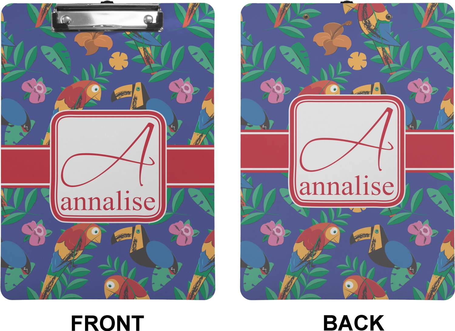 These custom clipboards are made from a strong hardboard and are coated with a glossy finish that accentuates the colors of your design. Alongside a retractable hook at its top, these decorative clipboards also feature sturdy clips to secure several sheets of paper. We sell these clipboards in two separate sizes. Our letter size measures at 12.5" L x 9" W, while our legal clipboard is approximately 15.5" L x 9" W. On both models, your personalization is printed on both sides of this clipboard and can be customized individually.