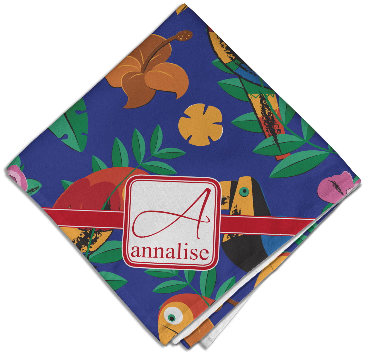 Each customizable cloth napkin is a polyester material guaranteed for long-term use. Since our napkins are cloth, it serves as a great reusable and eco-friendly dining decor. We sell personalized napkins individually or as a set of 4! Print your own unique design on all four napkins, or create four individual designs for each napkin! We offer two different napkin sizes - Cocktail napkins (approx. 10 x 10) and Dinner napkins (approx. 20 x 20). We print your design on one side, perfect for displaying your custom designed lunch napkins in any fold or table setting!