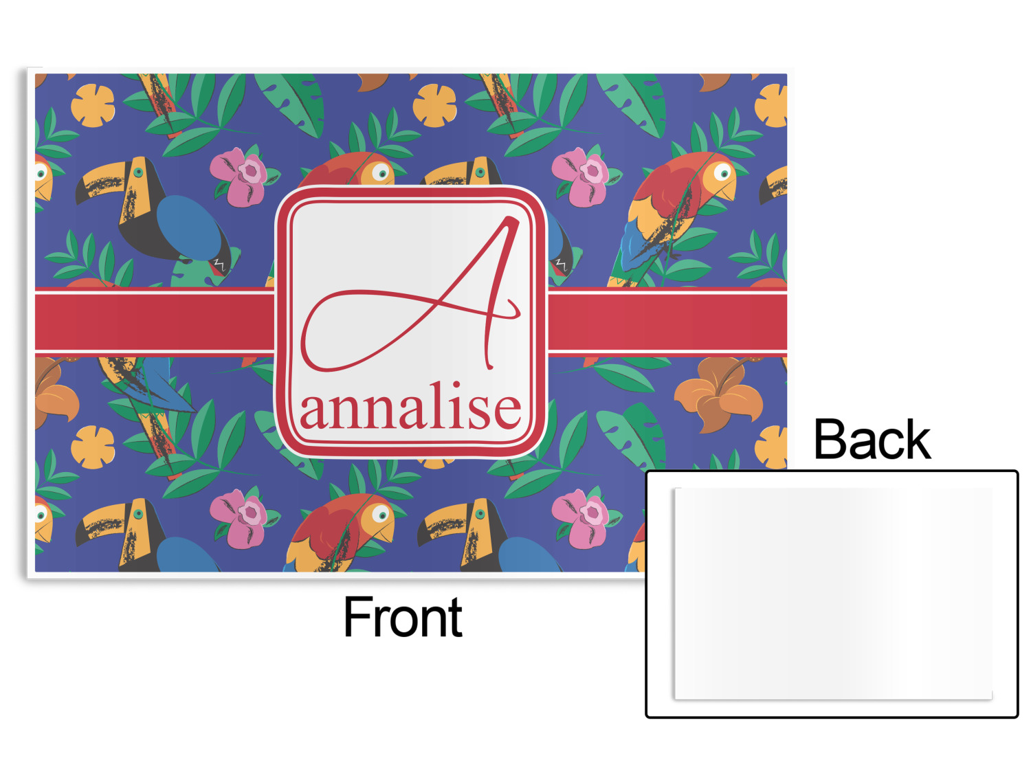 Our disposable paper placemats are 18 inches wide by 12 inches high and are printed in full color on 80lb cardstock on one side. The back is white. The placemats are designed as party decor and thus are meant for one time use.