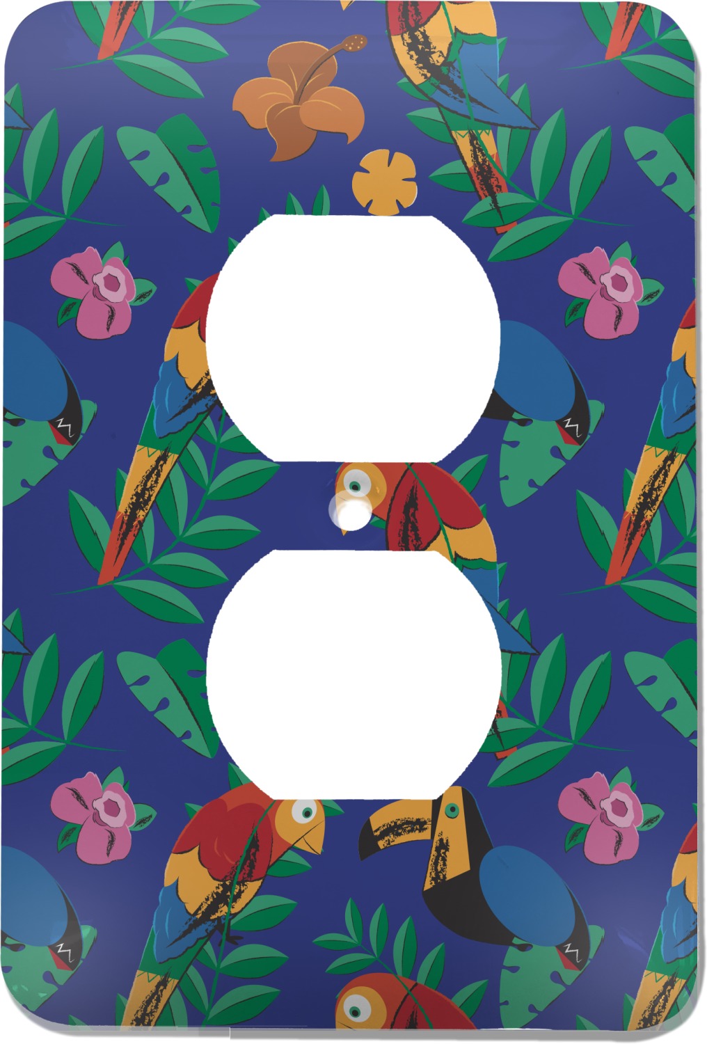 These outlet covers are made from a sturdy metal and display your design across its face. A satin finish coats the design to give it a finished look. The center of this outlet plate cover has a small hole to accommodate a screw upon installation. With your purchase of this decorative outlet cover, we include one screw. This outlet plate is of a standard size, and measures at approximately 3.5 by 5 inches.