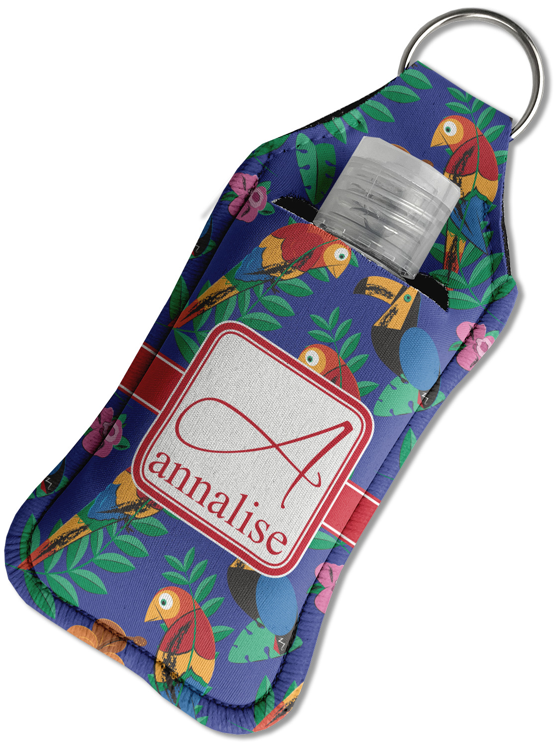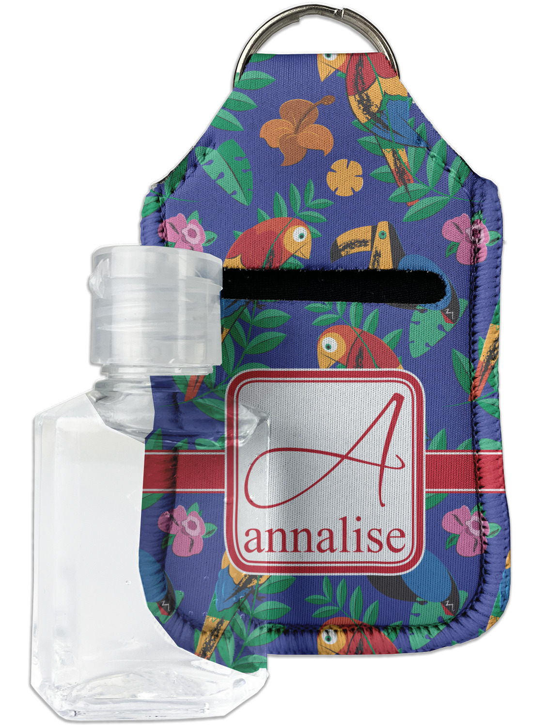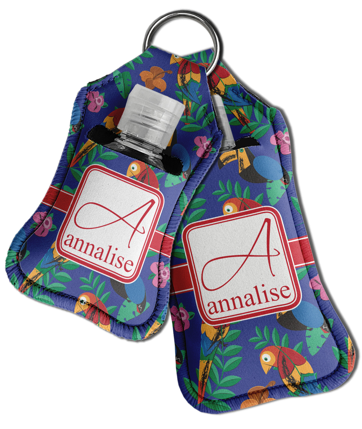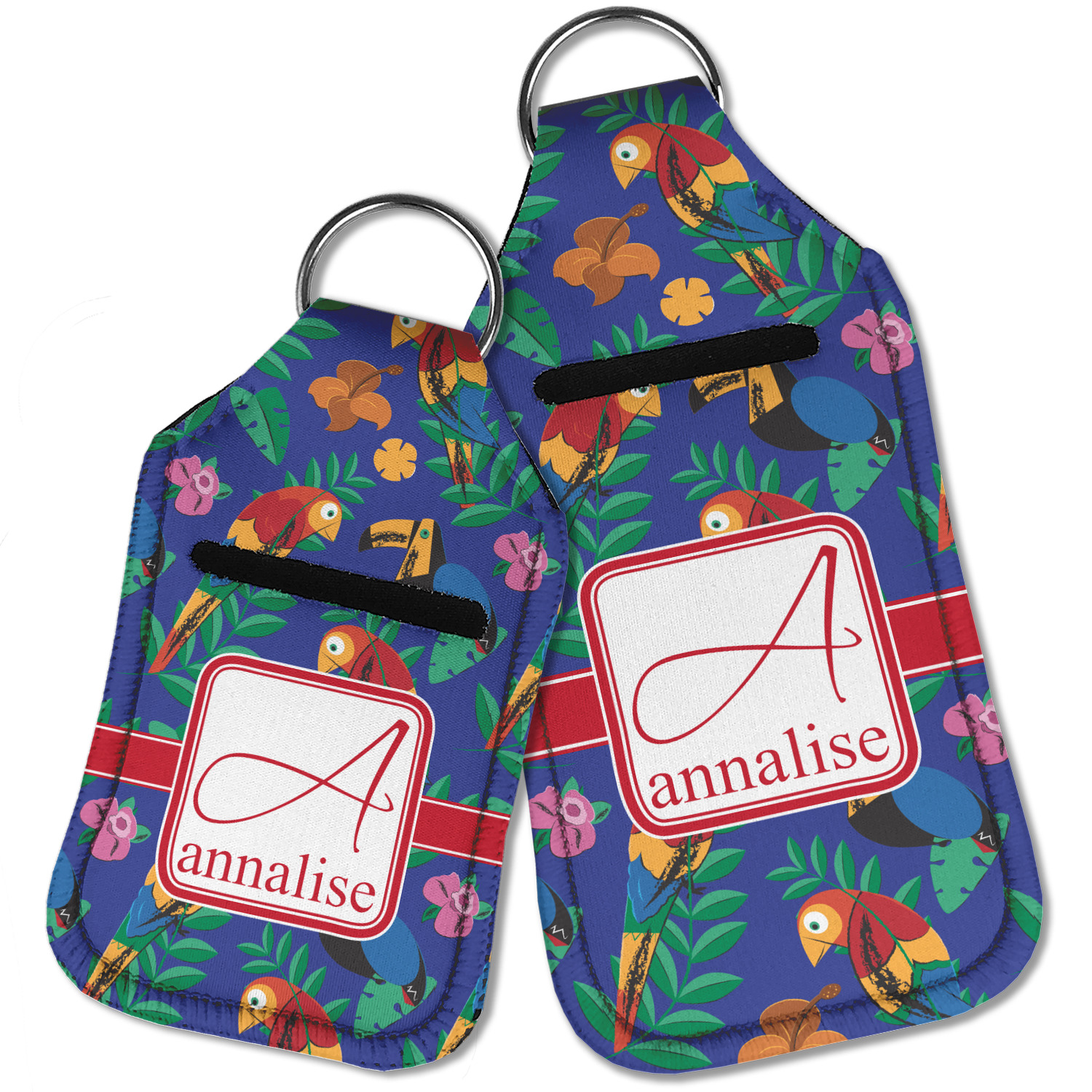 Each hand sanitizer holder comes with its own empty travel-sized, refillable hand sanitizer sure to fit snug in your customized sanitizer case! Our hand sanitizer cases are a durable, yet soft neoprene material sure to last any daily activities or travel agenda. Customize and personalize a hand sanitizer bottle holder with one of our two sizes - small (4.25" x 2.25") or large (5.5" x 2.5"). Each travel sanitizer holder comes with a keyring for attachment on bags, keys, or more!