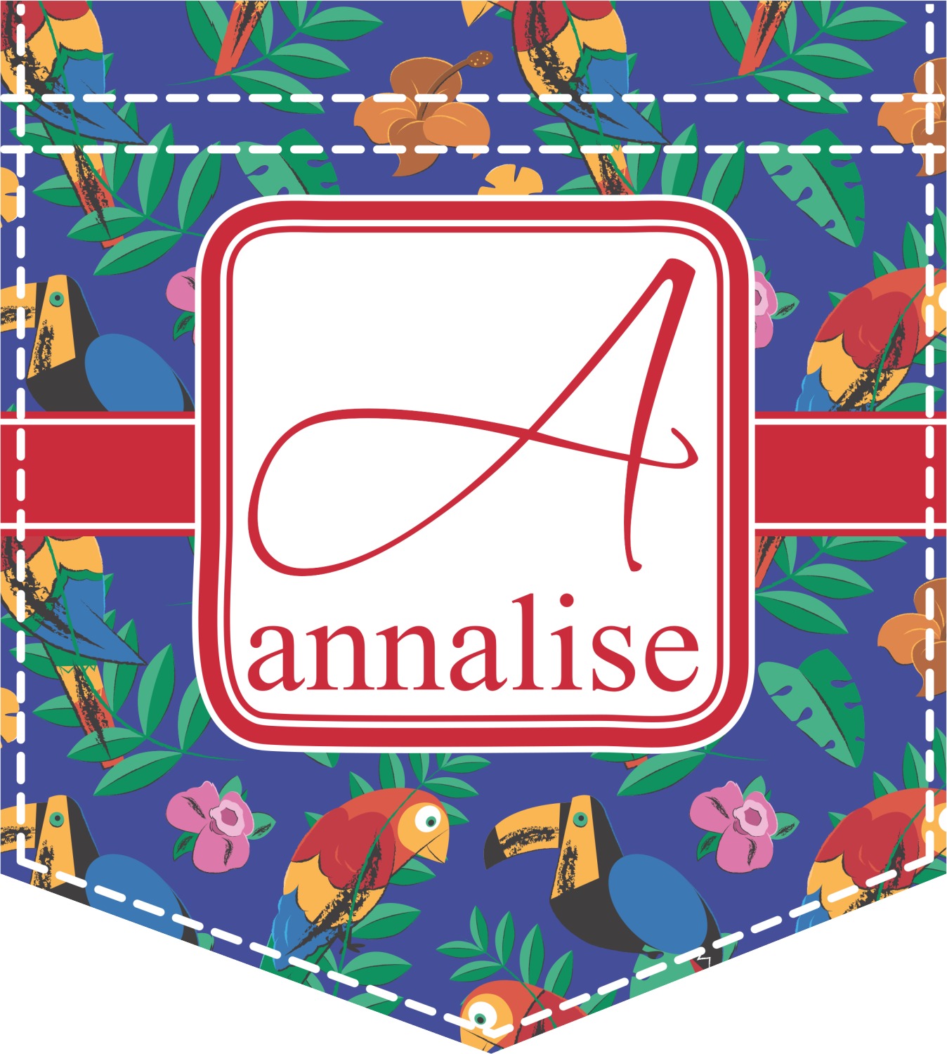 Our no sew faux pockets are easily customized by you. Our customization system allows you to change the personalization from a name to a monogram or to a name & initial or remove it completely. You can also change the colors, fonts, graphics, backgrounds etc. You can also upload your own picture / image or logo or we can custom create one for you or your event.