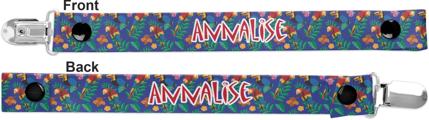 This personalized pacifier clip is the ideal size and measures at approximately 7.5 inches in length, when either end is snapped closed. On one end, you'll find a snap button. This button of your baby's pacifier holder is what can be attached to their pacifier to hold is securely in place. Simply open the snap, slip it through the pacifier opening, and snap it back into place. On the opposite end of this baby pacifier holder, you'll find a metal clip that can secure to a baby's collar or sleeve. This clip ensures that the strap stays in place, and that your baby's pacifier is always on hand.