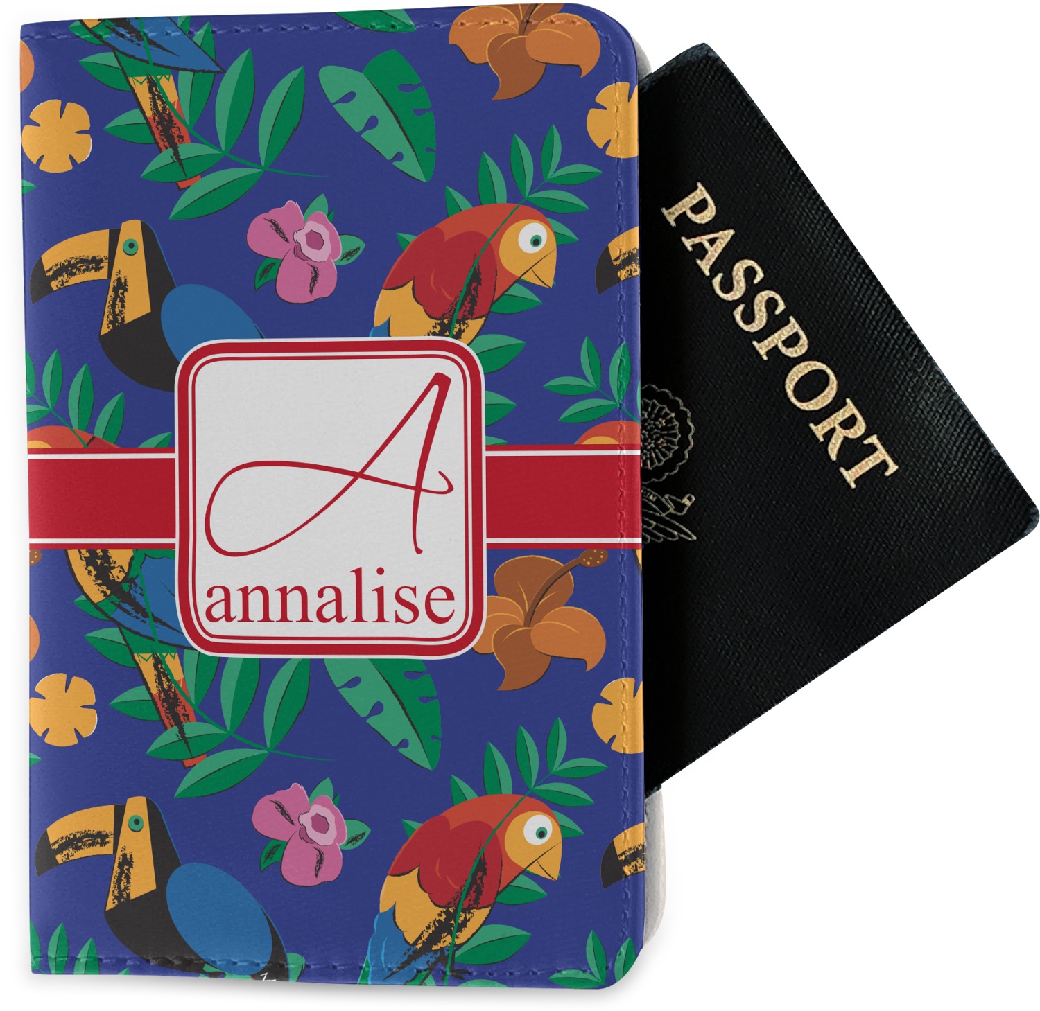 The passport holder has a beautiful inside made of faux leather, while the outside is a smooth slick vinyl like material printed with your personal design.