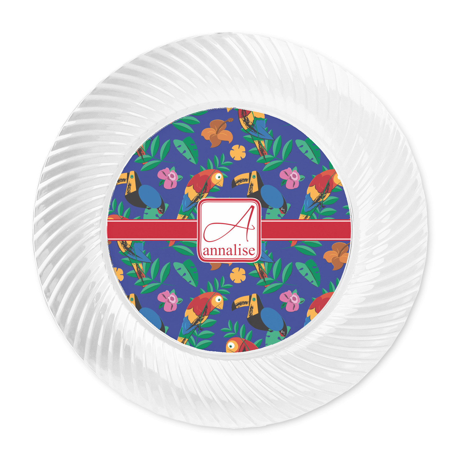 Made from a beautiful clear plastic plate as a base, your design is printed to the underside of the plate. The outside of these disposable plates has a classic swirl texture to it for a high quality look and feel.