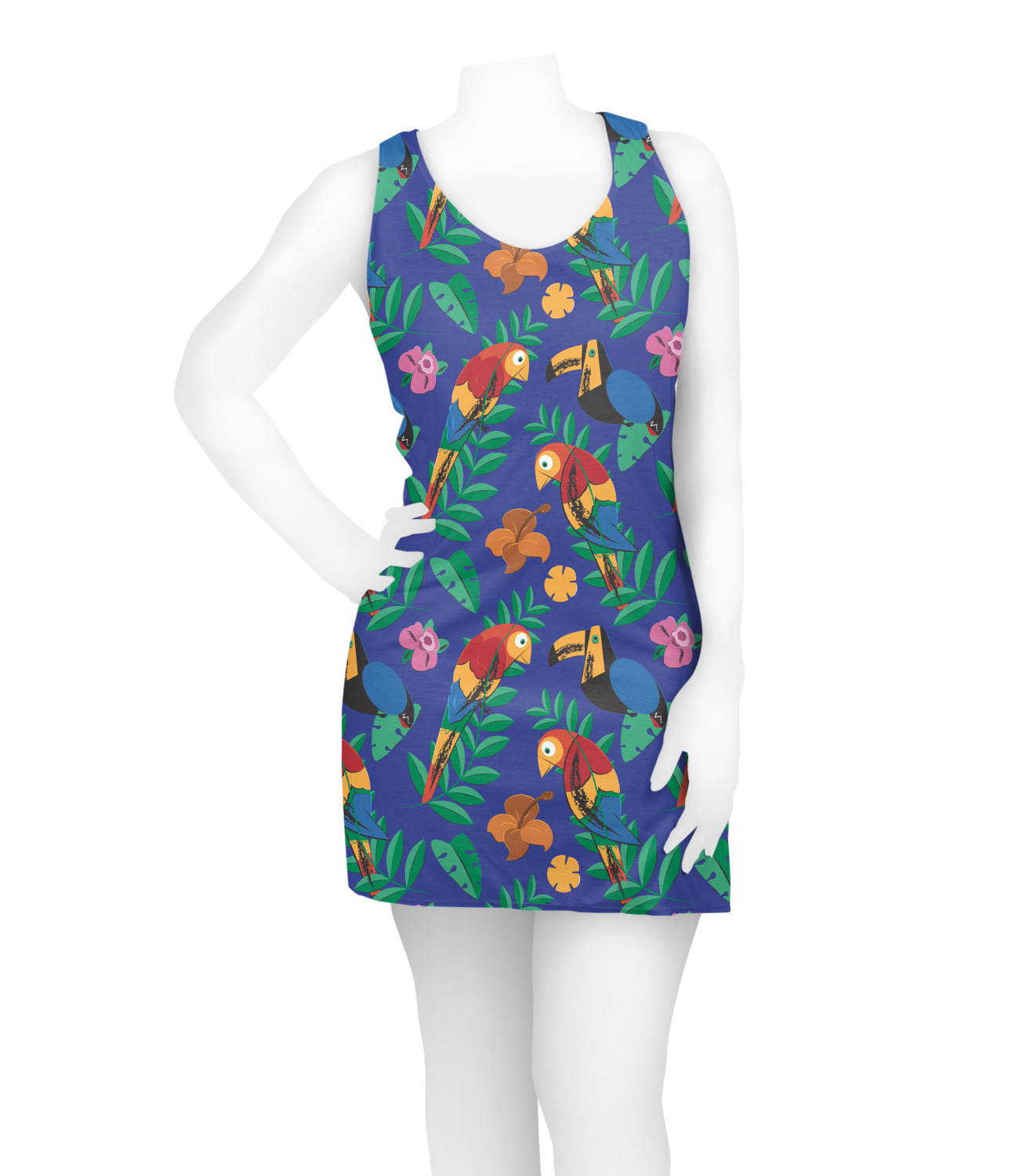 What's more classic Hawaiian than rainbow-colored parrots, toucans, and flirty flowers? This bright design will send you straight back to better days, spent lounging on a beach in some tropical paradise.
