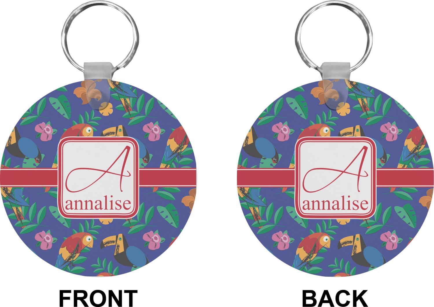 Our personalized keychains attach to the included metal, split key ring with a plastic, removable snap. Since a metal ring is included with your purchase, you have the liberty to keep your keys together on the ring, with or without your unique keychain. We offer this keychain in three different shapes: circle, heart, or diamond. We print your personalized design(s) on both sides of the key chain, and the surface has a glossy, reflective finish that only emphasizes your design. Each keychain is approximately 2.25 by 2.25 inches.