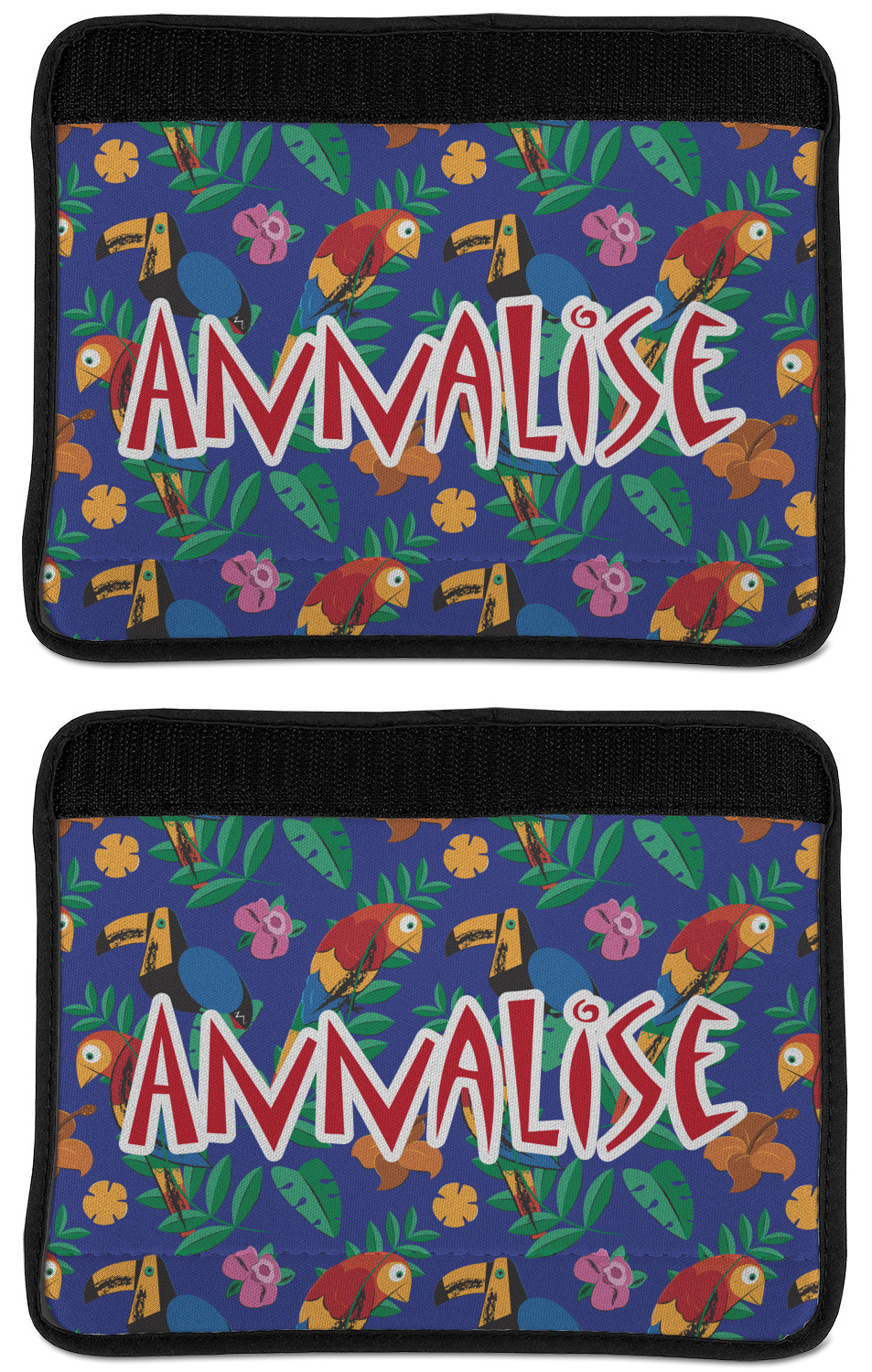 Made from neoprene, our seat belt strap covers wrap around the belt itself and have a Velcro tab for easy attachment and closure. The belt's edges are trimmed with a black polyester for a secure finish. Each cover is 9.5 by 7 inches when open and 9.5 by 2.5 inches when closed. We print your personalized design on the face of the seat belt pad.