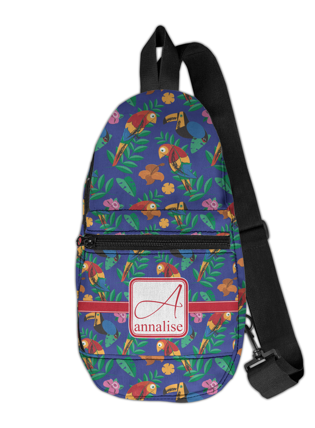 These sling bags are made from a durable polyester canvas. The fabric is printed with your design, then cut and hand sewn right here in the USA.