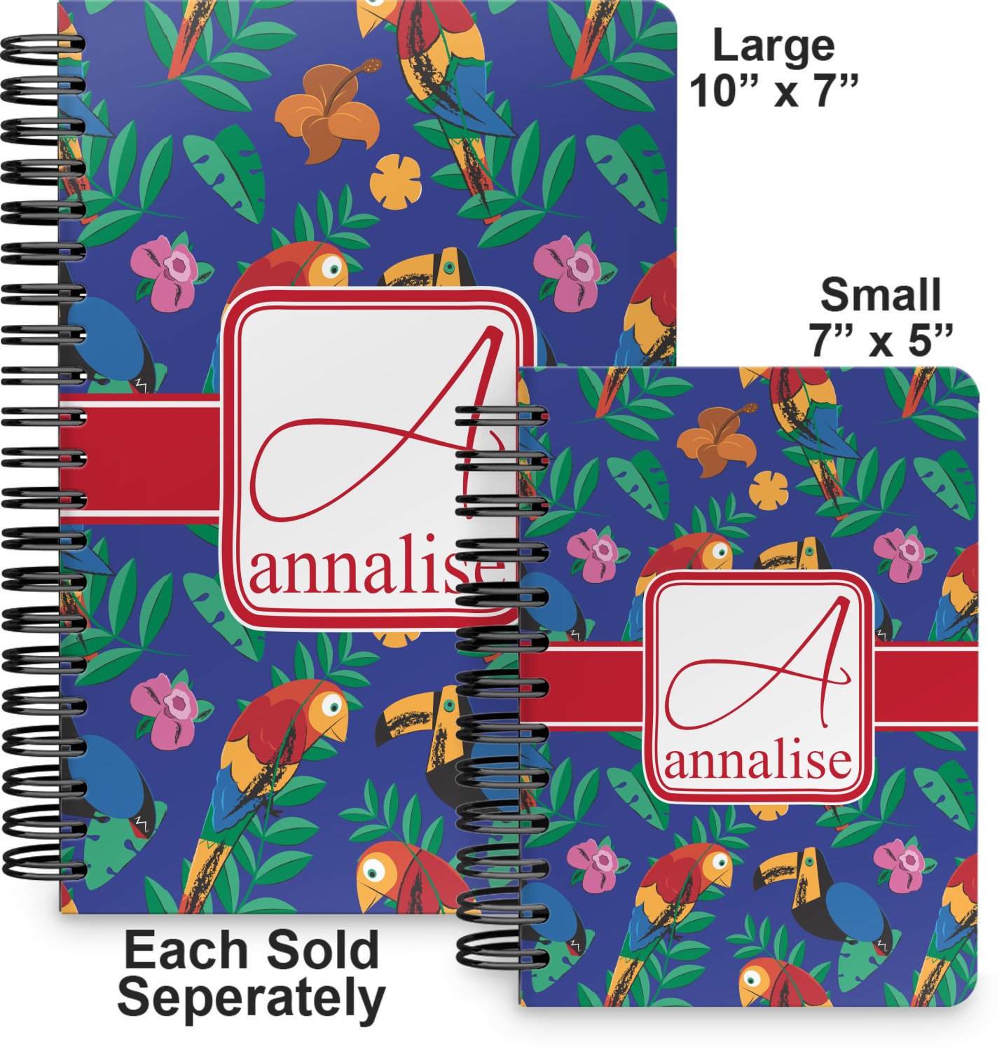 This spiral journal is available in two sizes. The first size is more suitable for a tote or purse and measures at 7" x 5". The second option is a bit larger, at 10" x 7", and is a better fit for a briefcase or backpack.