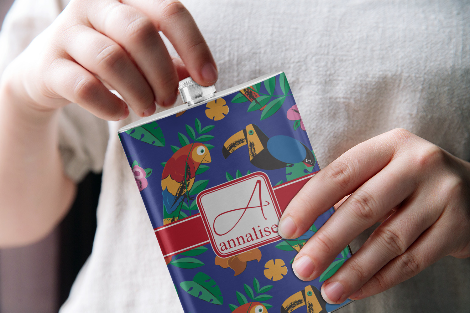 What's more classic Hawaiian than rainbow-colored parrots, toucans, and flirty flowers? This bright design will send you straight back to better days, spent lounging on a beach in some tropical paradise.