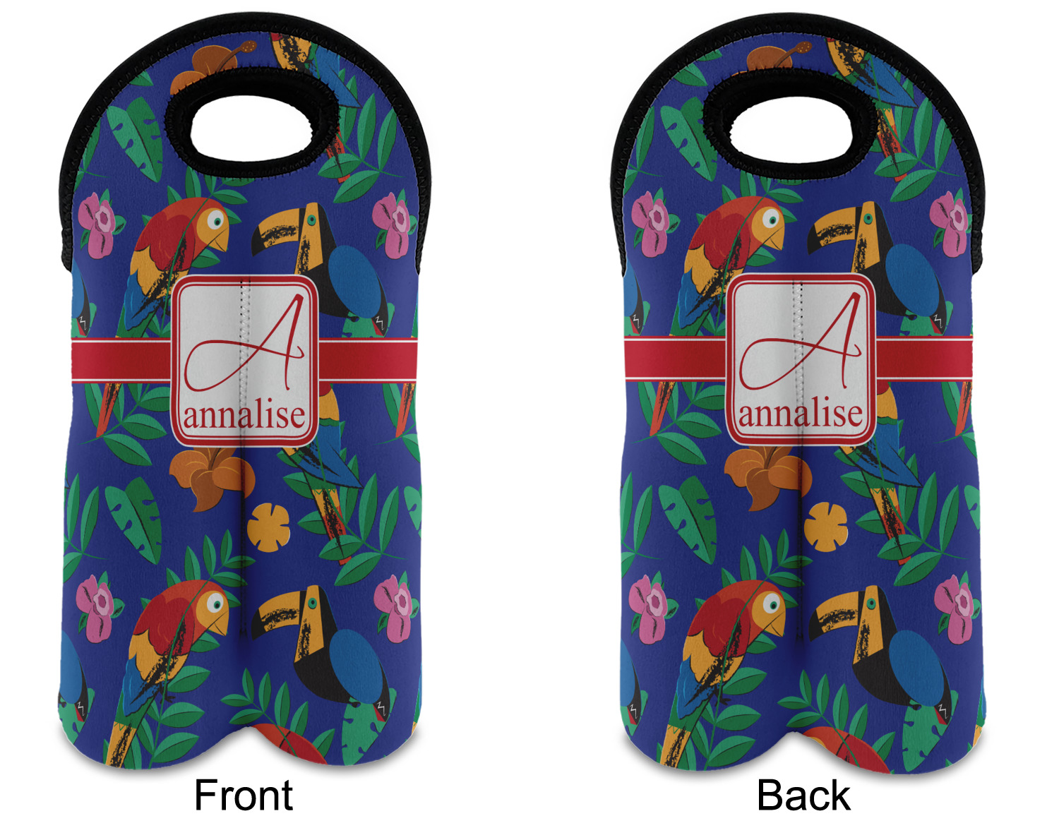 These tote bags are insulated to keep the bottles cold and have a stitched separation down the middle and double handles to keep the two bottles safe and secure during travels.