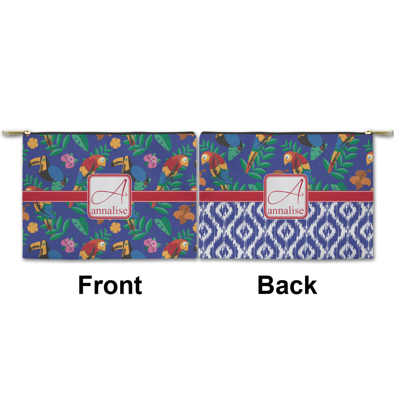 You can design both the front and the back of the pouch - same design, two complementary designs or two totally different designs - the choice is yours! We offer many different personalization styles i.e. name, name & initial, monograms - so the choice to personalize is also yours.