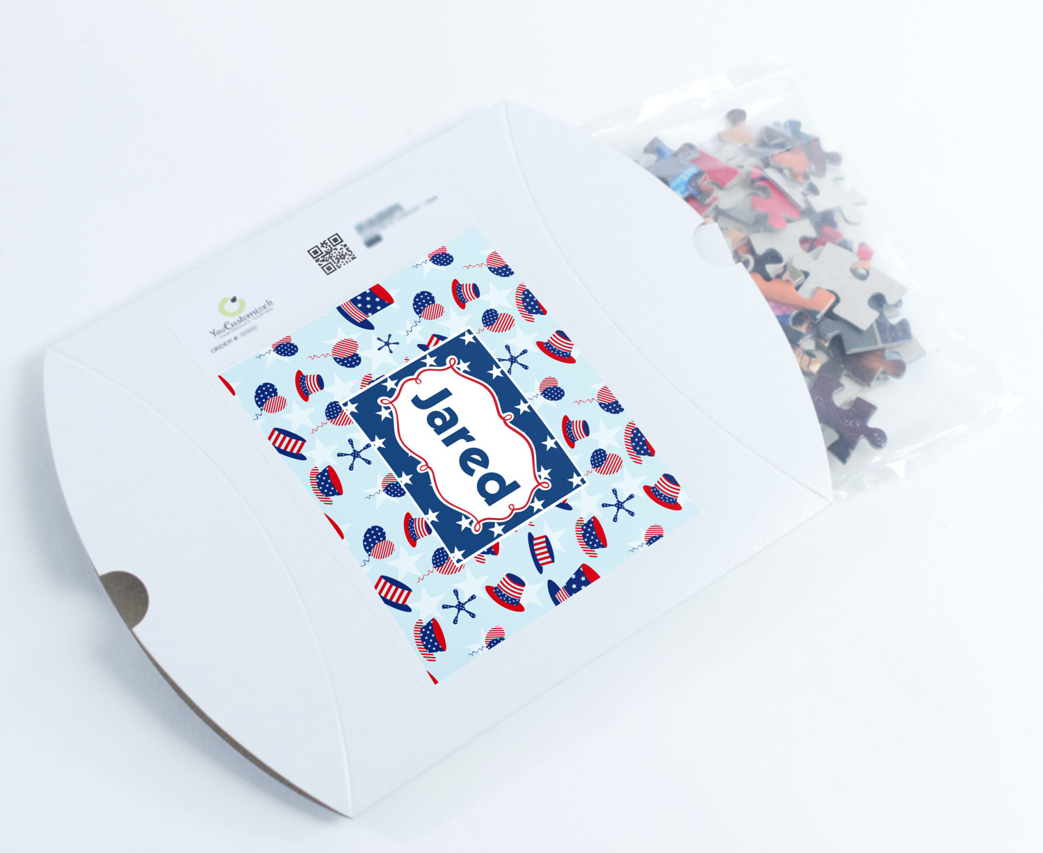 You can also upload your logo or art that you or your kids drew. To create more challenging jigsaw puzzles, you can create a pattern from with your logo or artwork. You can also add other elements such as text or personalization.