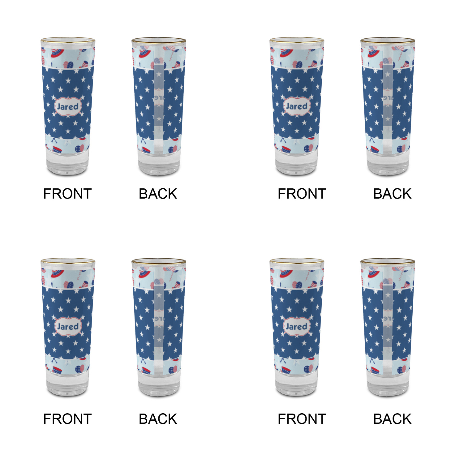 These glass shooter glasses are printed in full color with the design of your choice. These are a tall shooter 2 oz size and stand 4" tall. The print is a full wrap design to boldly display your personalization.