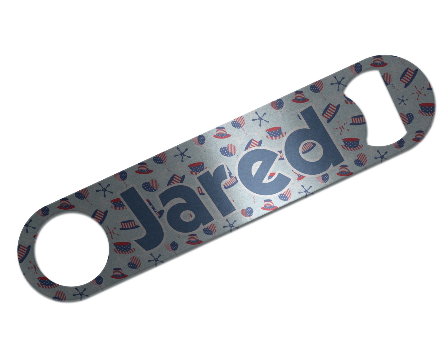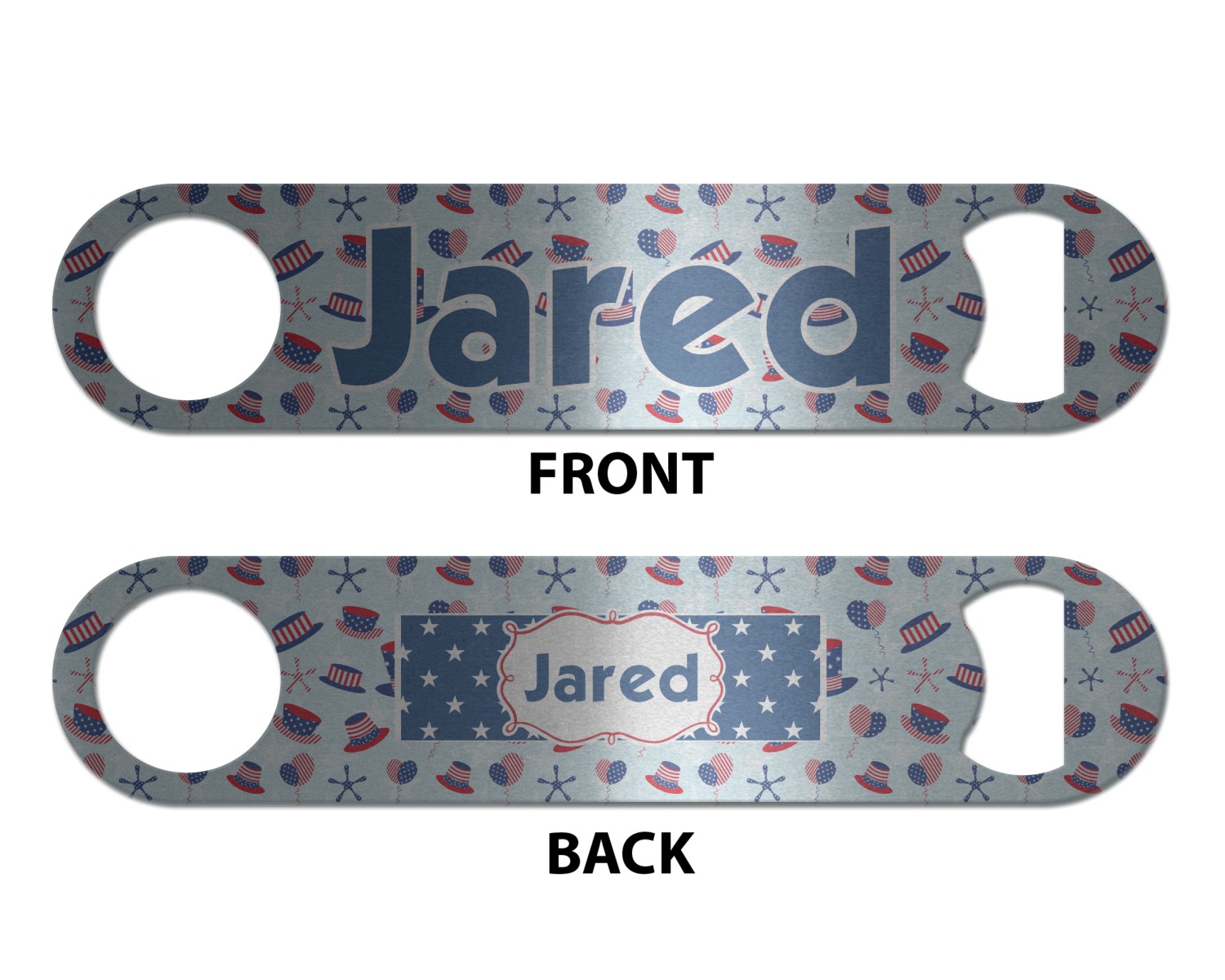 Made from stainless steel, these beer bottle openers are 7 by 1.625 inches, giving you plenty of leverage when trying to open a stubborn bottle. On one end of this personalized bottle opener, you'll find a circular hole for you to hang and display your opener. On the opposite end, you'll find the tool used for opening bottles. This opener in particular has the same structure and style as professional bartender bottle openers. Your customization is sublimated onto both the back and front, and both sides can be customized individually. Choose from one of our two base colors - white or silver.