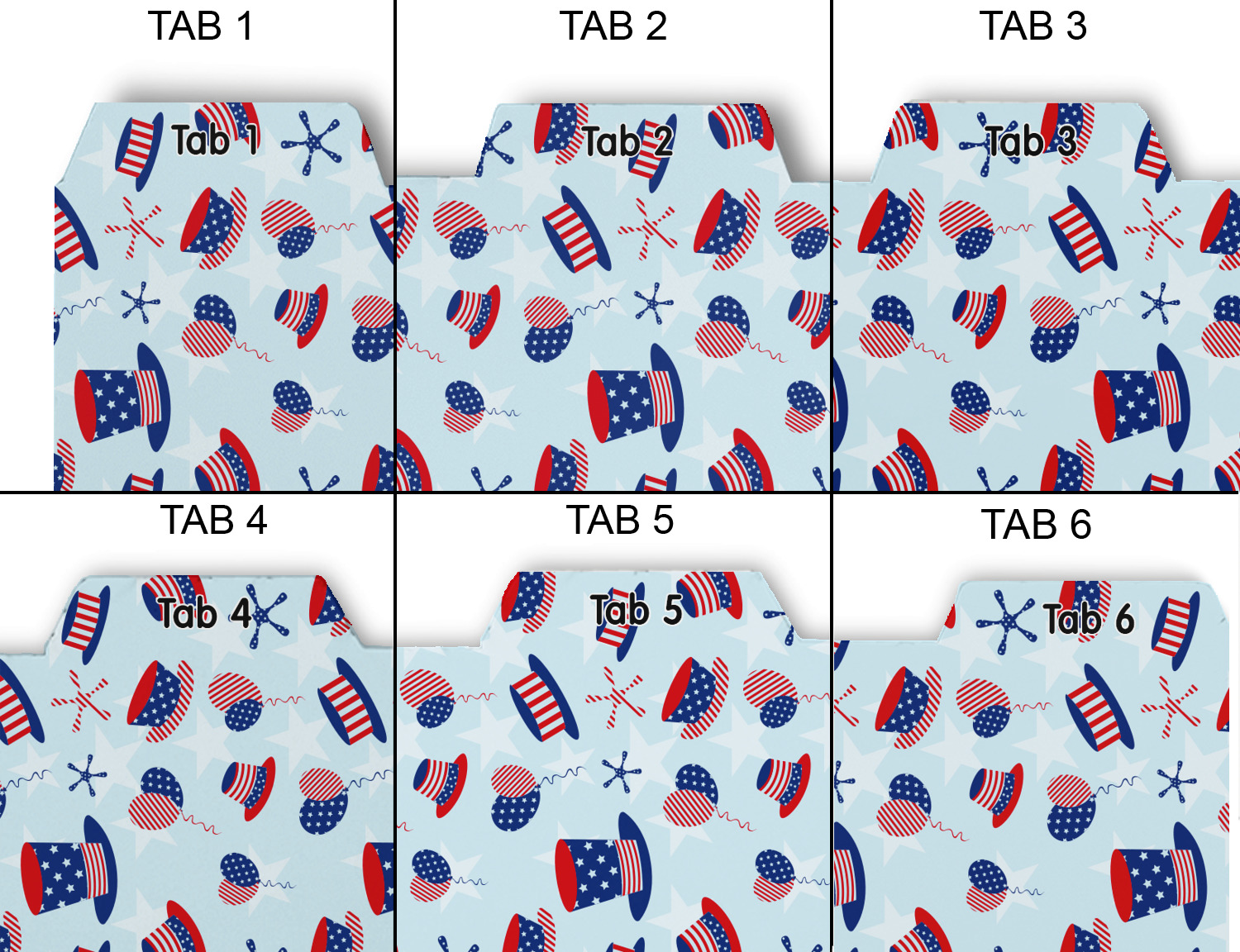 Whether you use binders at school or at work, we have designs to suit all of them. Available in 5 or 6 tab sets, you are sure to find a set to suit your needs. The back of each one is white and can be used to take notes, write vital information on, etc.