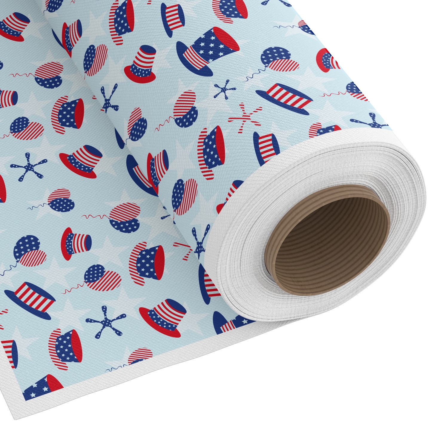 Patriotic Celebration is a fun pattern with red, white, and blue striped and starred hats and balloons. The light blue background really makes these design elements pop! A navy and white star pattern is used as a secondary pattern to add some contrast.