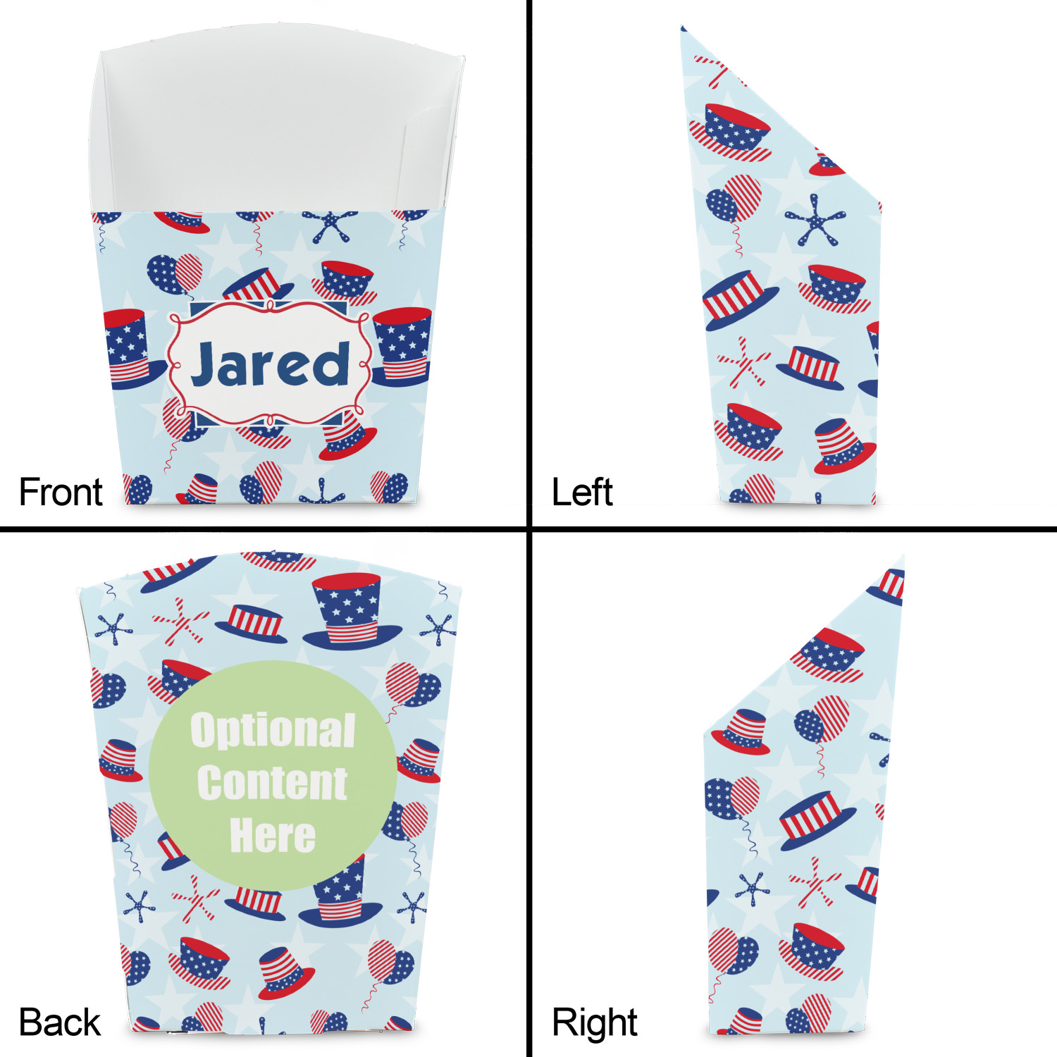 These favor boxes are printed in full color on quality cardstock - so coordinating the french fry favor boxes to match your event's themes or colors should be a breeze. You can upload your own design including artwork, logos or photos