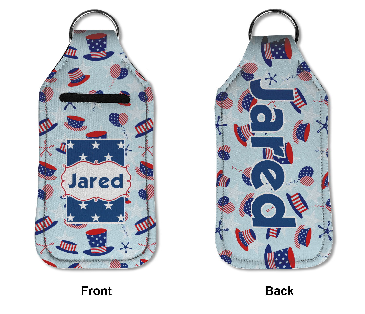 Each hand sanitizer holder comes with its own empty travel-sized, refillable hand sanitizer sure to fit snug in your customized sanitizer case! Our hand sanitizer cases are a durable, yet soft neoprene material sure to last any daily activities or travel agenda. Customize and personalize a hand sanitizer bottle holder with one of our two sizes - small (4.25" x 2.25") or large (5.5" x 2.5"). Each travel sanitizer holder comes with a keyring for attachment on bags, keys, or more!