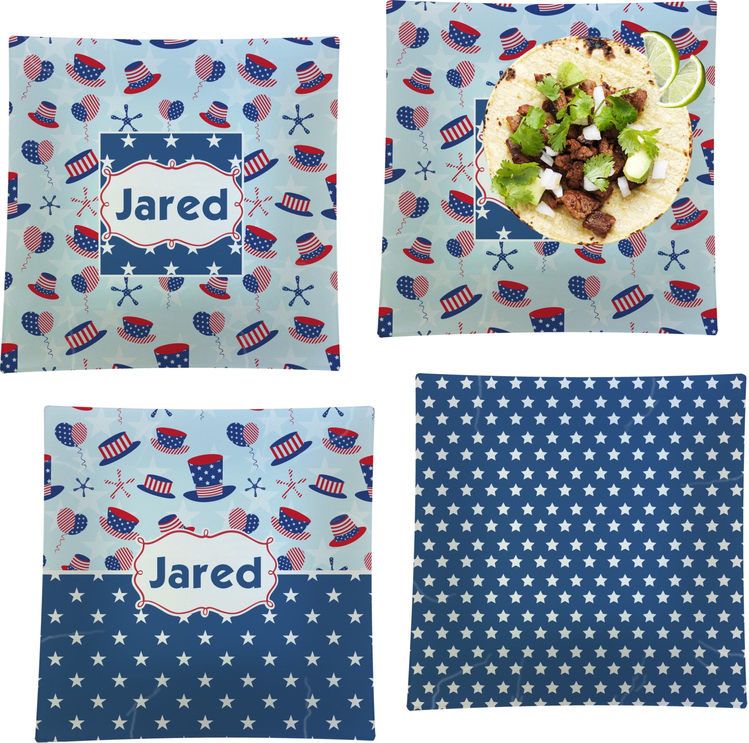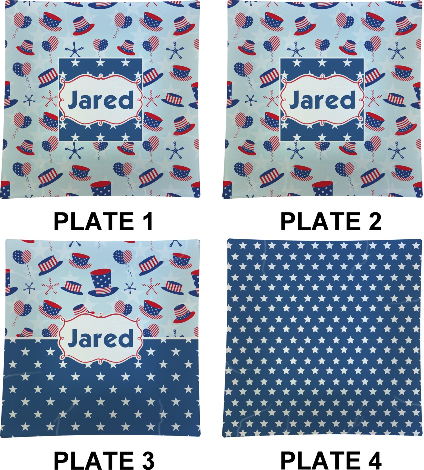 America / USA Designs for Glass Square Lunch / Dinner Plates 9.5" - Set of 4