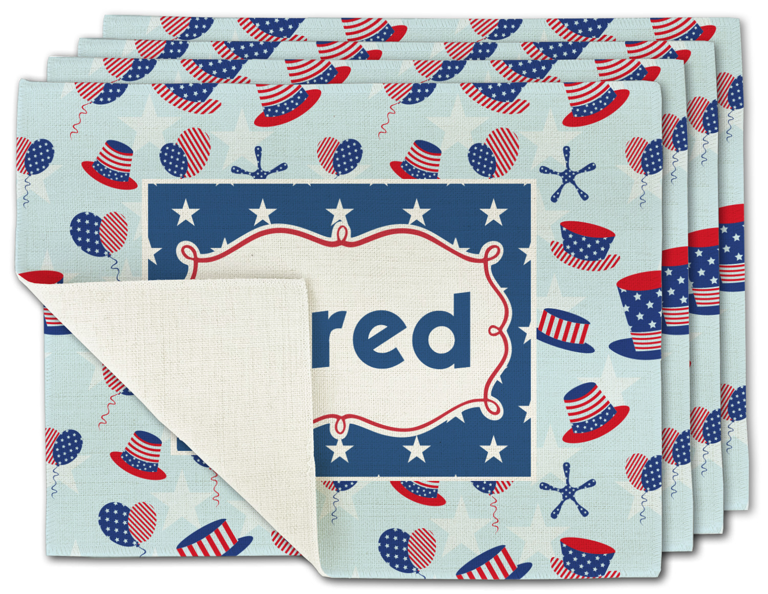 Patriotic Celebration is a fun pattern with red, white, and blue striped and starred hats and balloons. The light blue background really makes these design elements pop! A navy and white star pattern is used as a secondary pattern to add some contrast.
