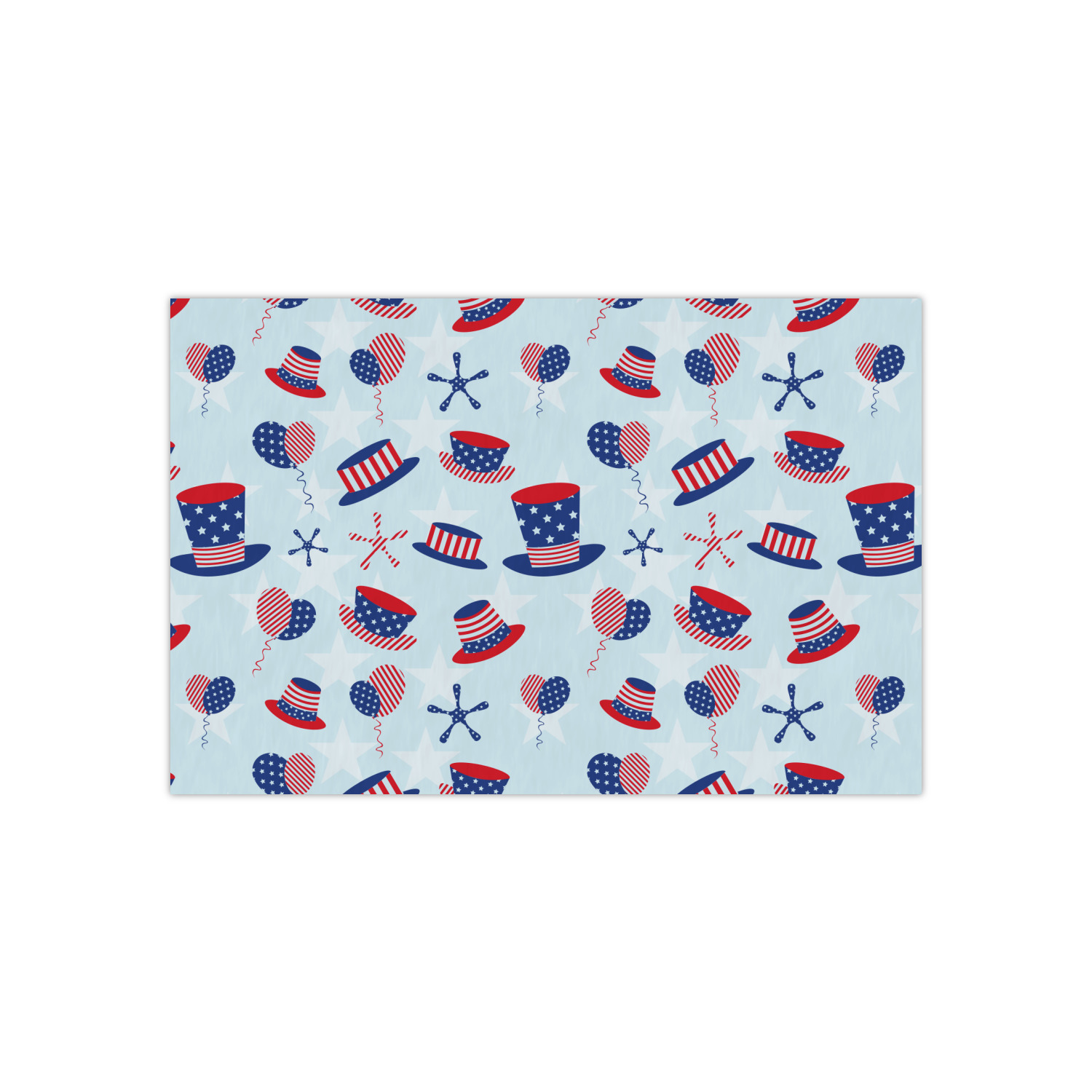 Patriotic Celebration is a fun pattern with red, white, and blue striped and starred hats and balloons. The light blue background really makes these design elements pop! A navy and white star pattern is used as a secondary pattern to add some contrast.