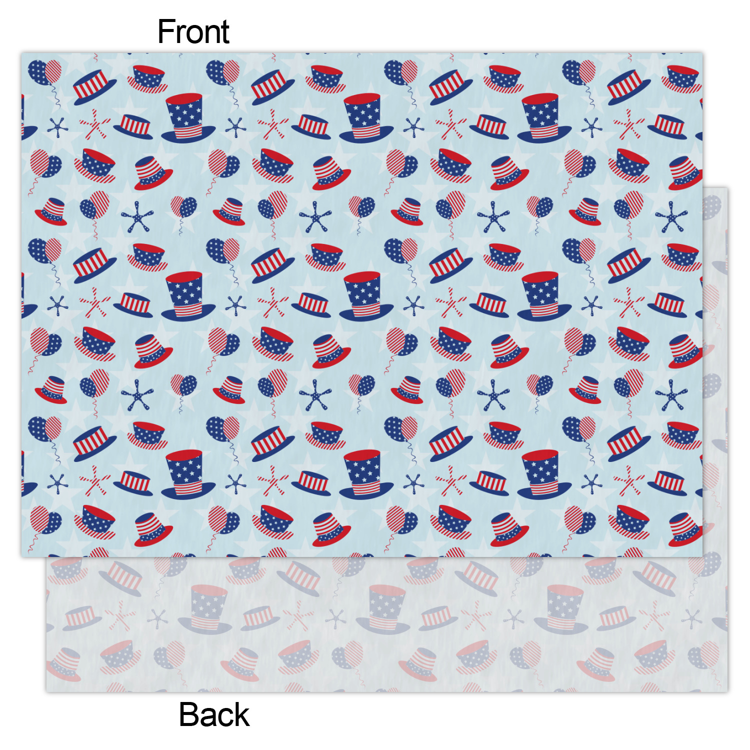 Patriotic Celebration is a fun pattern with red, white, and blue striped and starred hats and balloons. The light blue background really makes these design elements pop! A navy and white star pattern is used as a secondary pattern to add some contrast.