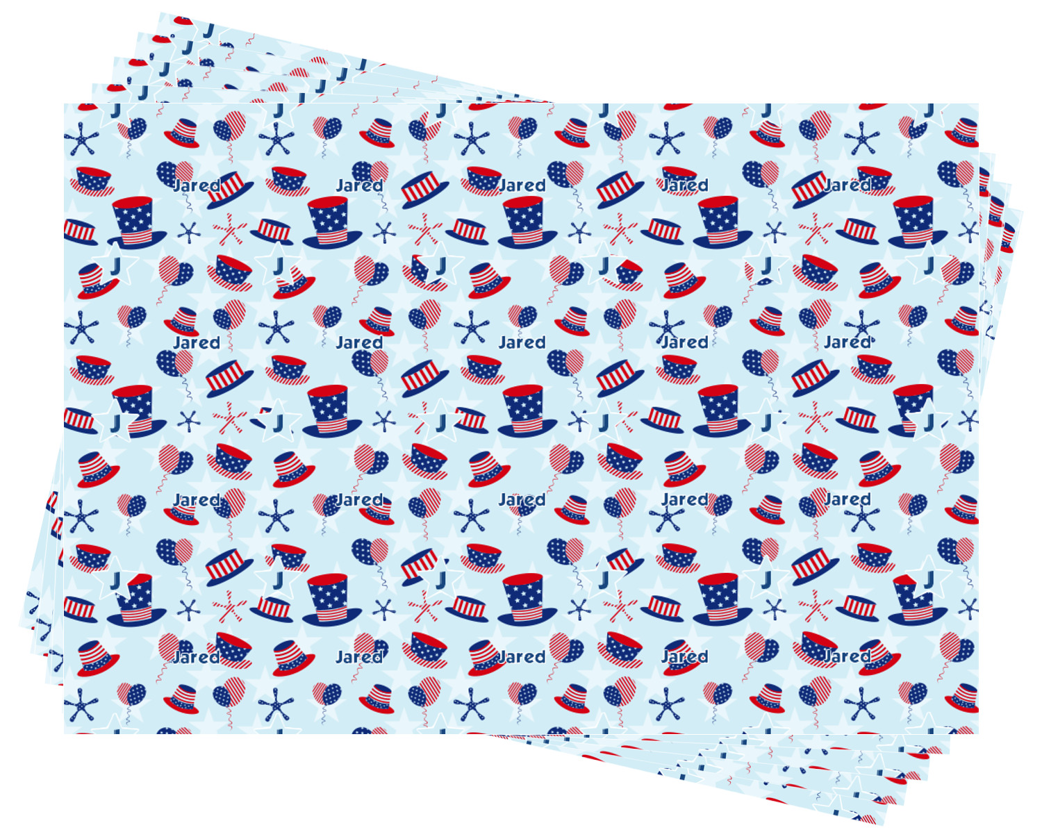 Patriotic Celebration is a fun pattern with red, white, and blue striped and starred hats and balloons. The light blue background really makes these design elements pop! A navy and white star pattern is used as a secondary pattern to add some contrast.