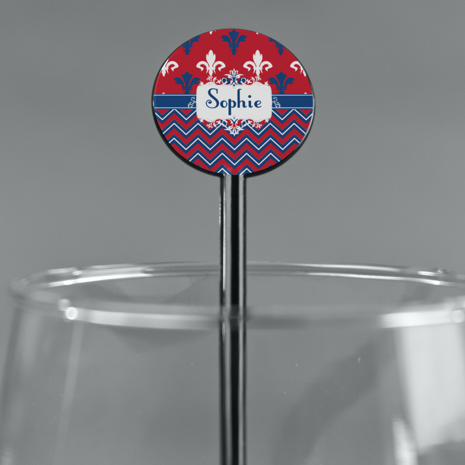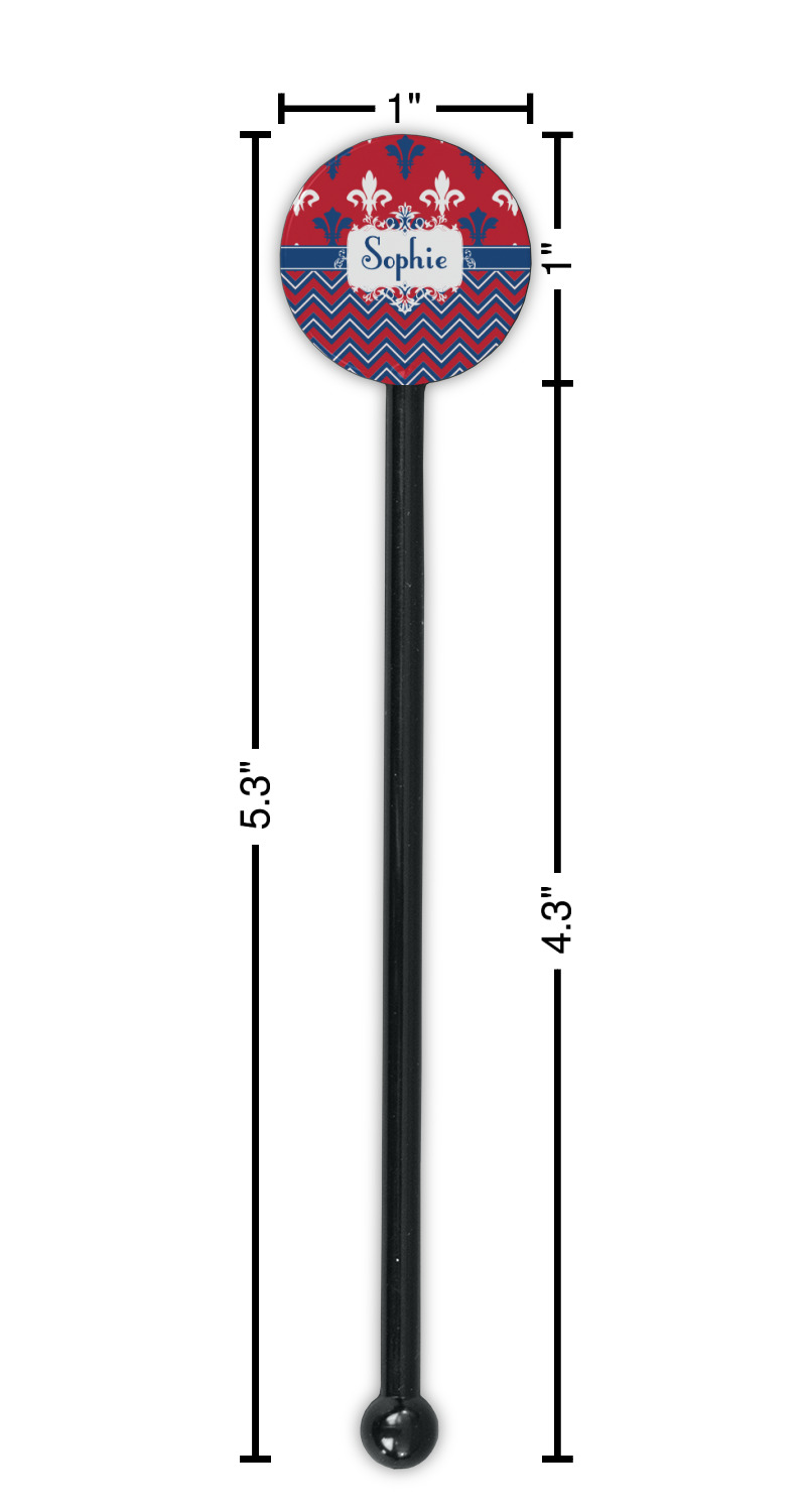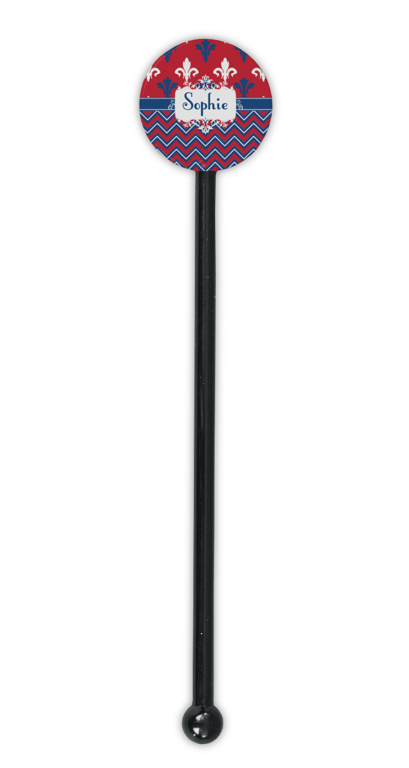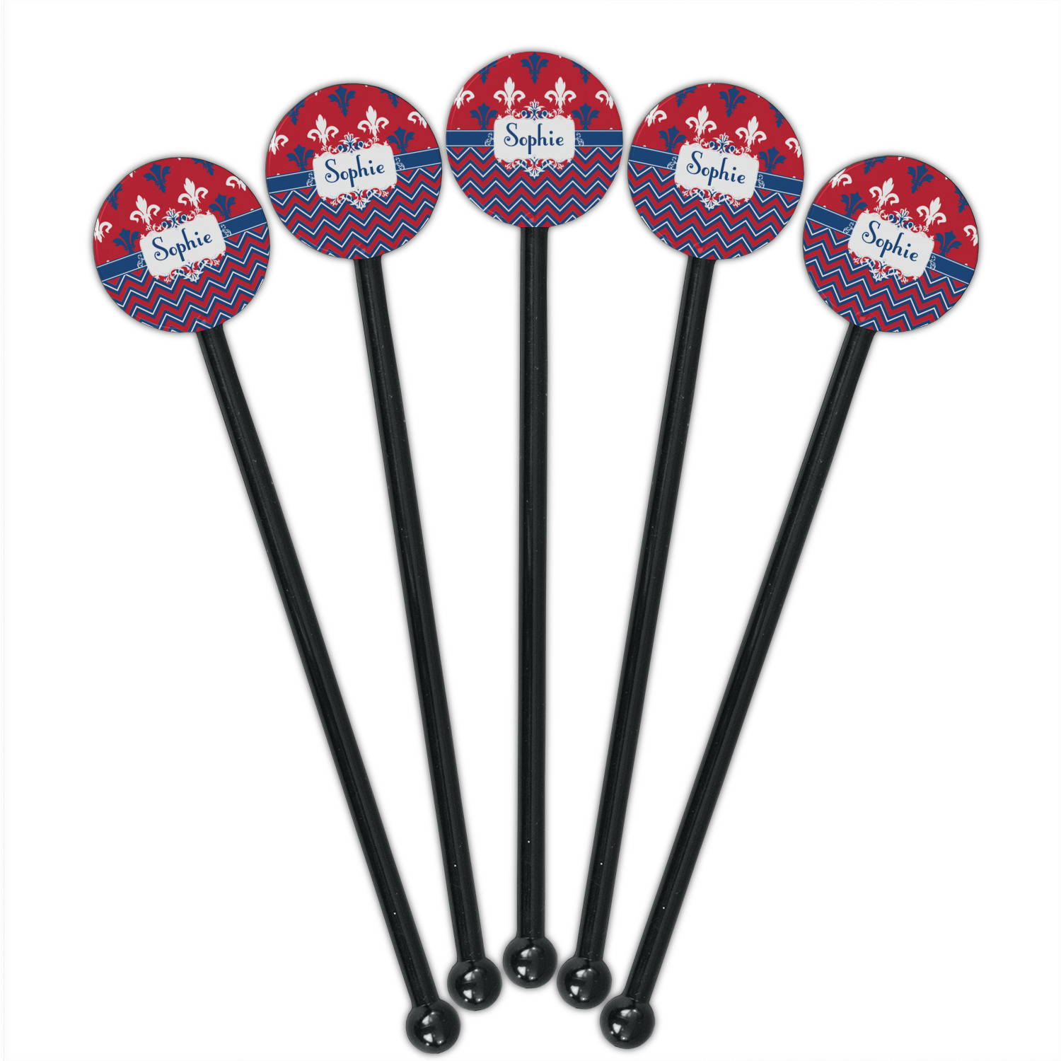 America / USA Designs for 5.5" Round Plastic Stir Sticks - Black - Single-Sided