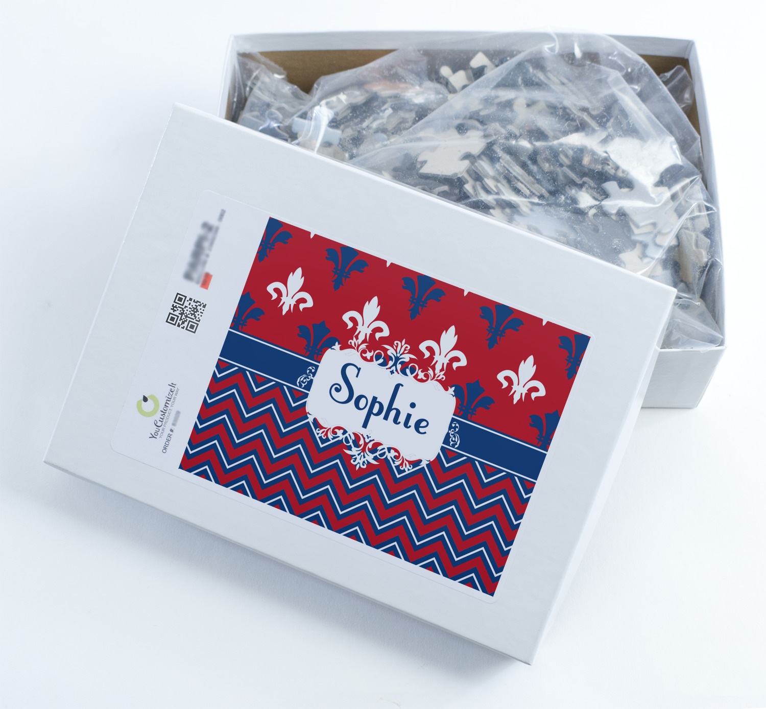 We print our puzzles on thick white chipboard in vibrant colors, then laminate the chipboard and die cut your puzzle. Your jigsaw puzzle is shipped to you in a box with the image of the puzzle on the box.