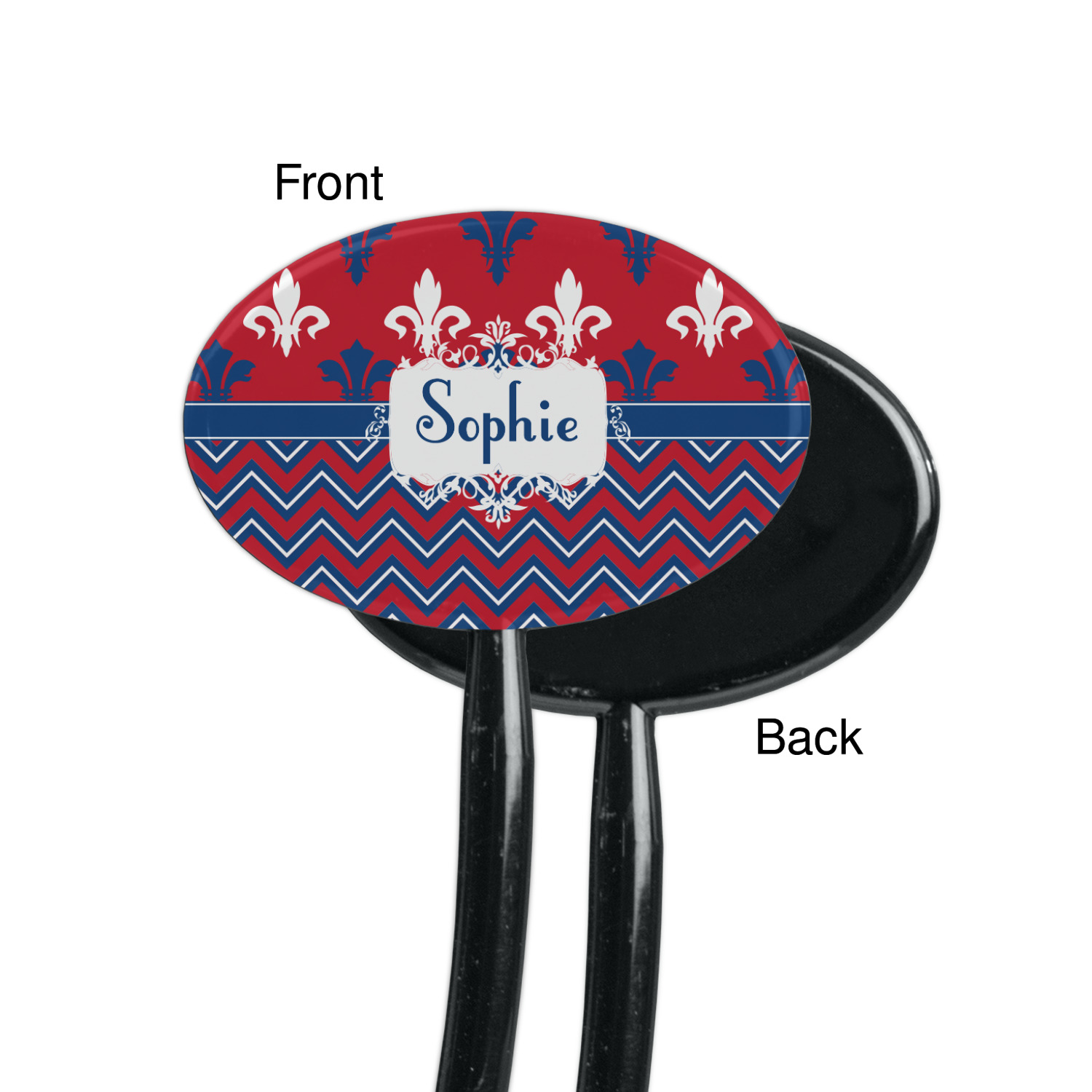 Remember the independence of our country with the Patriotic Fleur de Lis design. This design is a powerful combination of red, white, and blue. A chevron pattern nicely compliments the fleur de lis pattern with an elegant frame to hold your personalization.