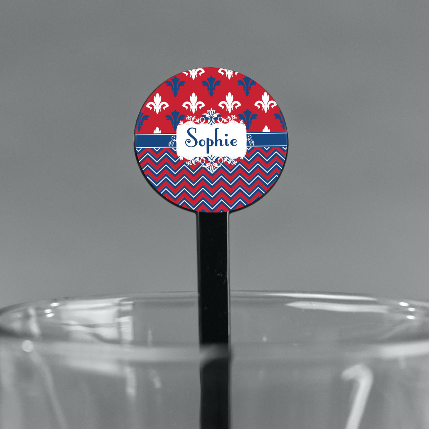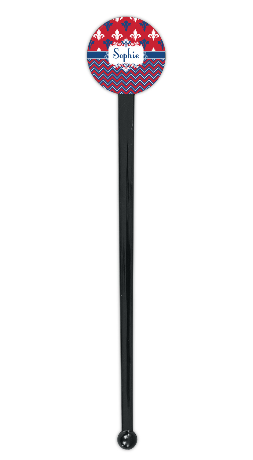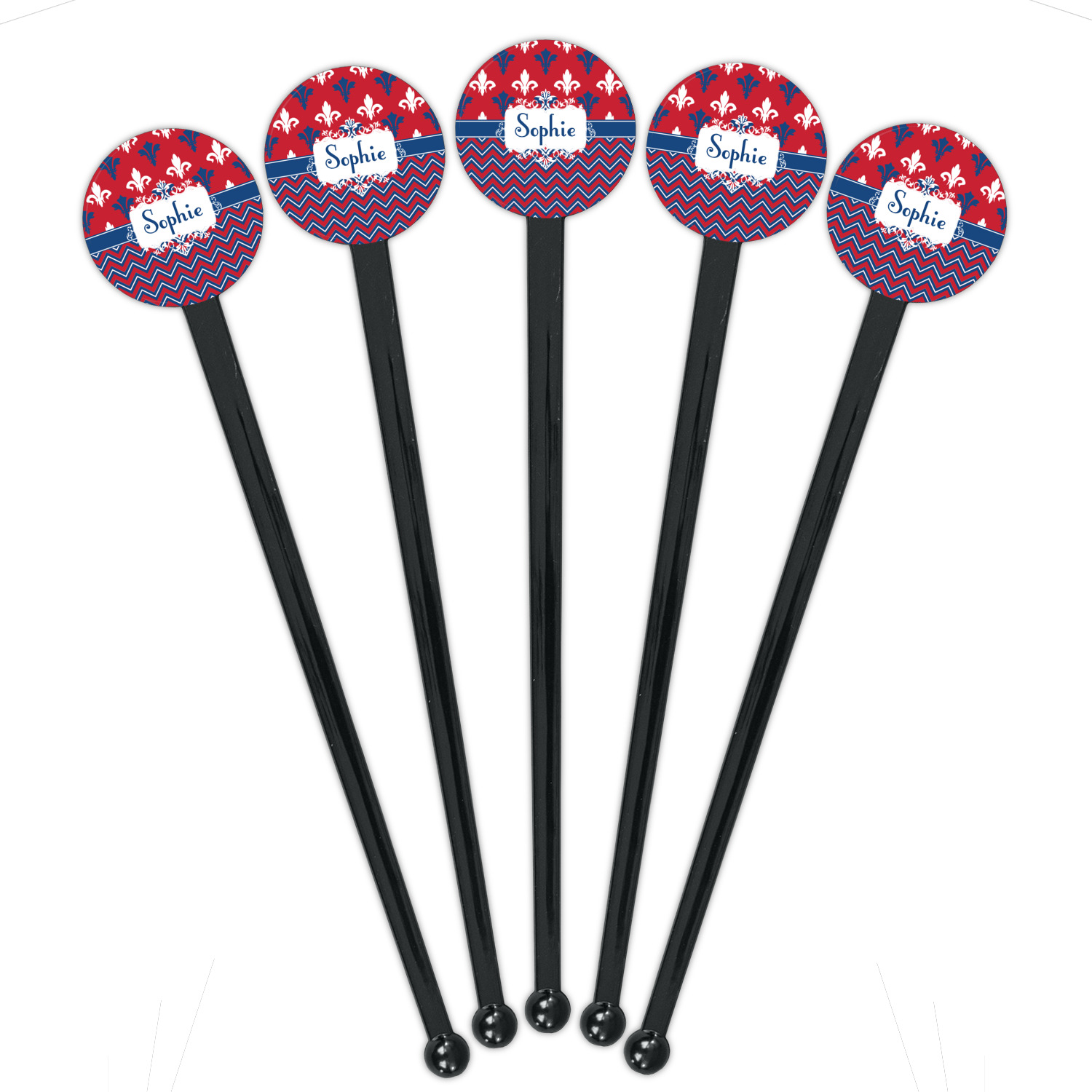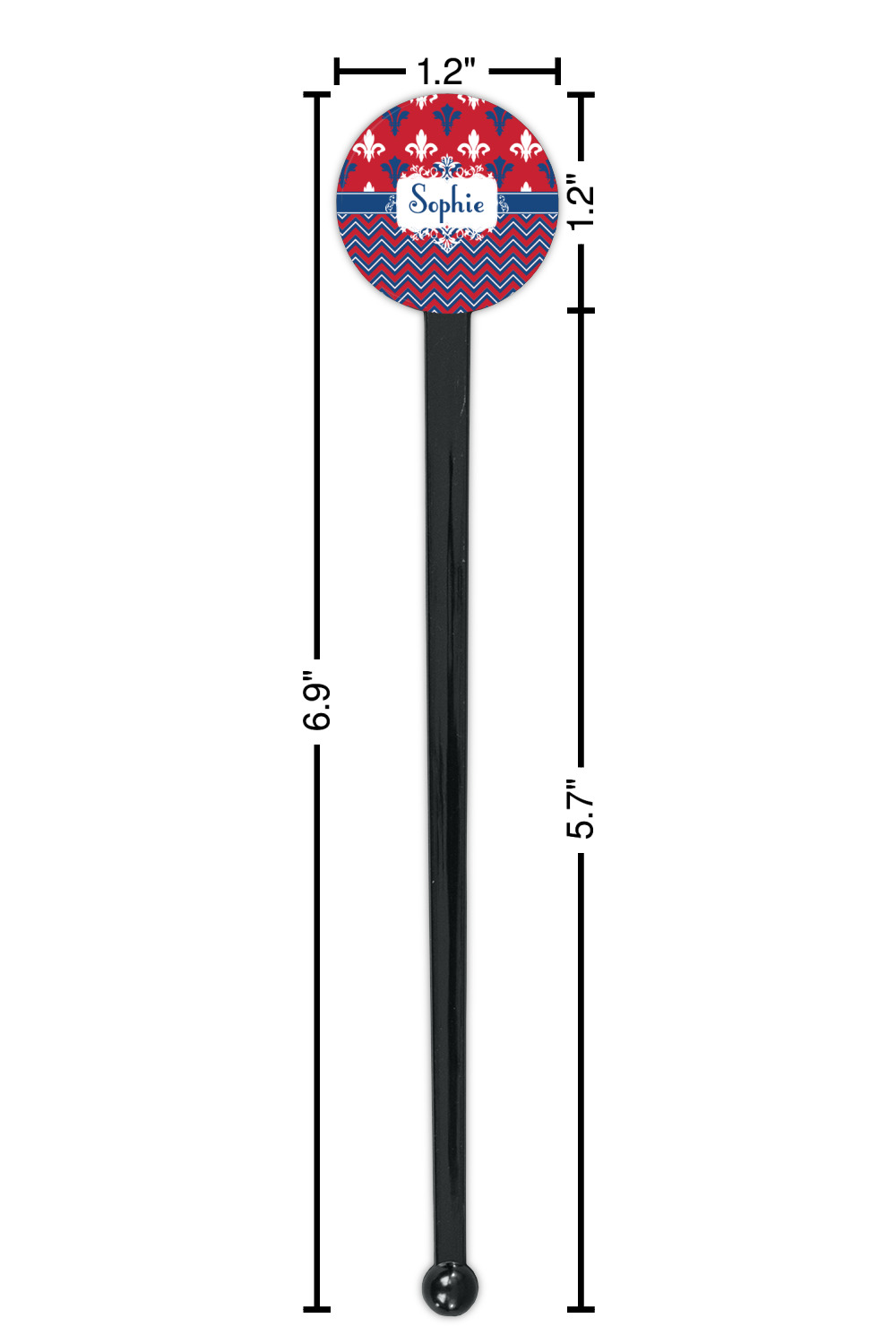 America / USA Designs for 7" Round Plastic Stir Sticks - Black - Single-Sided