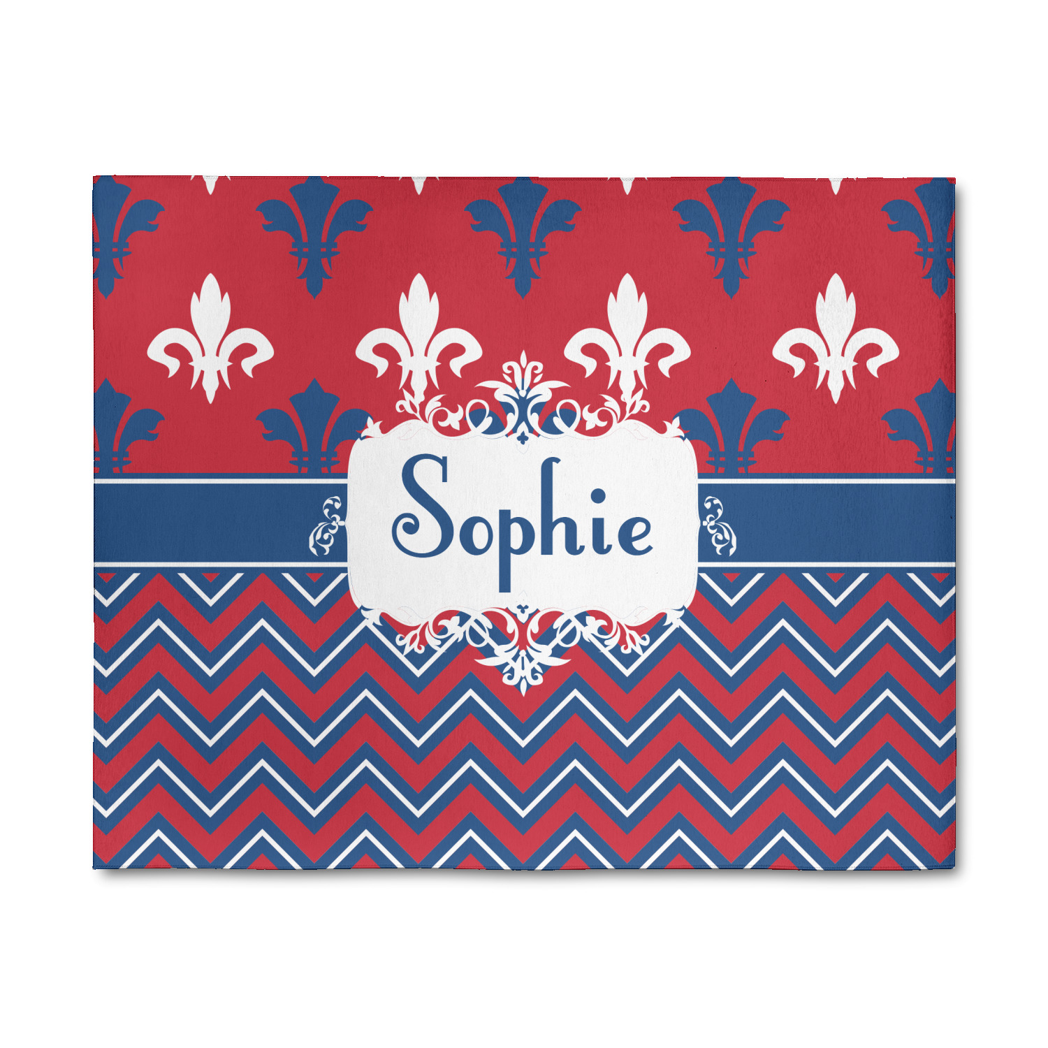 Remember the independence of our country with the Patriotic Fleur de Lis design. This design is a powerful combination of red, white, and blue. A chevron pattern nicely compliments the fleur de lis pattern with an elegant frame to hold your personalization.