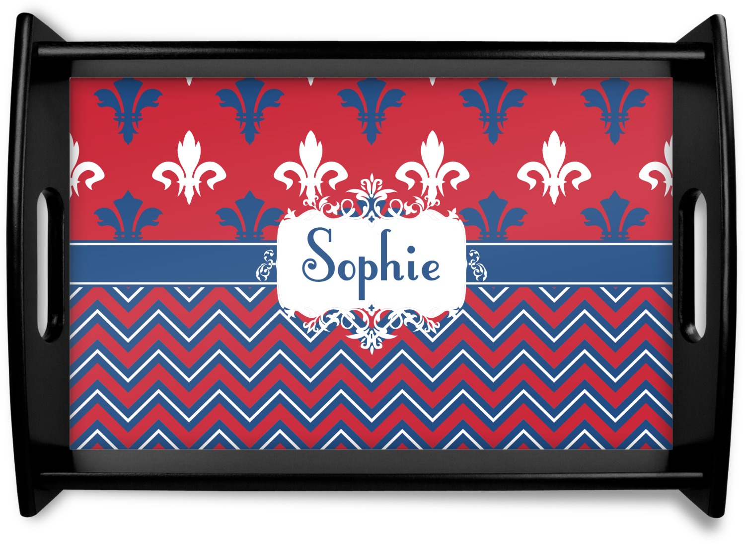 Remember the independence of our country with the Patriotic Fleur de Lis design. This design is a powerful combination of red, white, and blue. A chevron pattern nicely compliments the fleur de lis pattern with an elegant frame to hold your personalization.