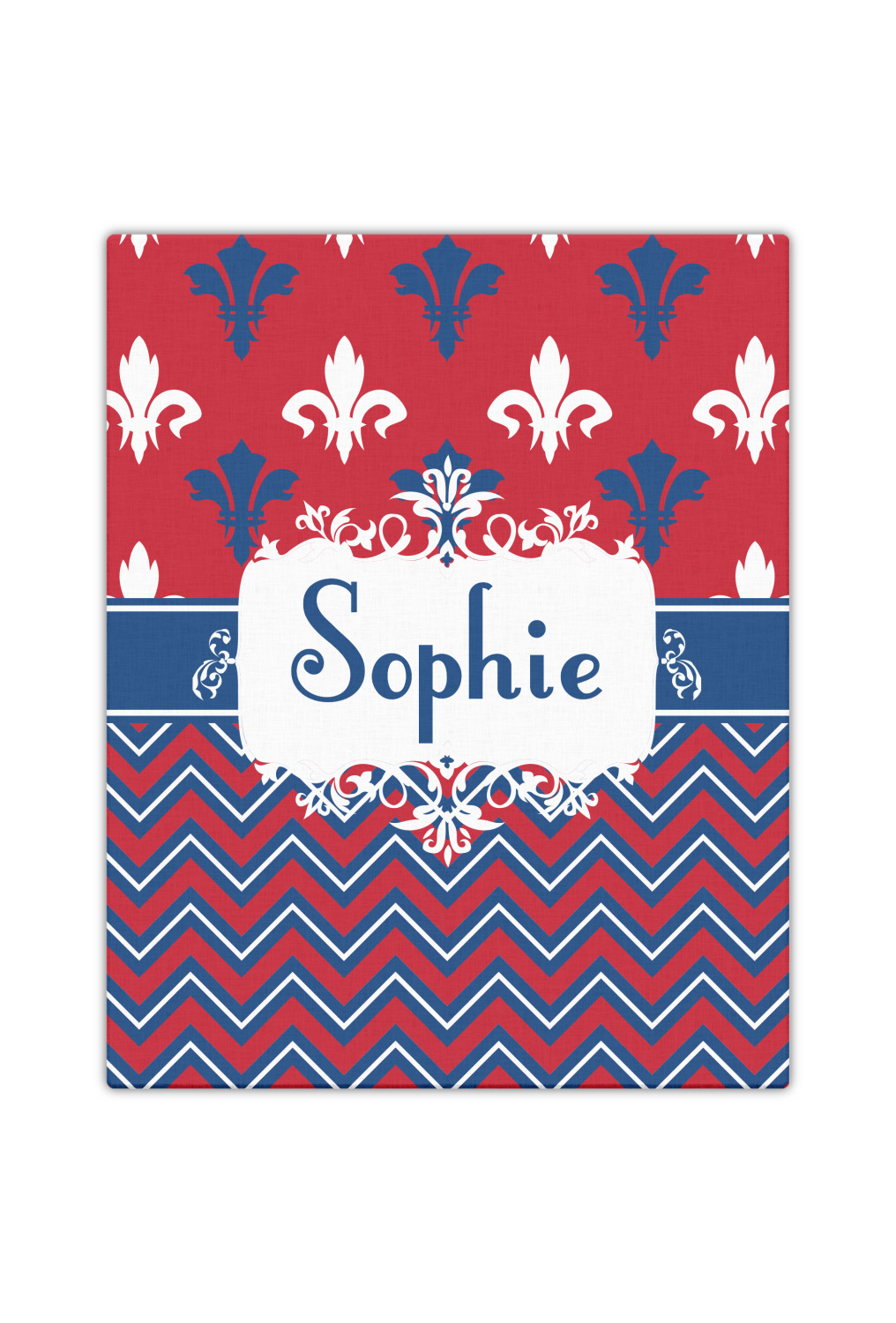 Remember the independence of our country with the Patriotic Fleur de Lis design. This design is a powerful combination of red, white, and blue. A chevron pattern nicely compliments the fleur de lis pattern with an elegant frame to hold your personalization.