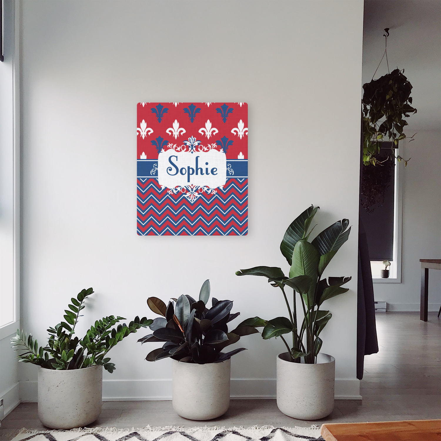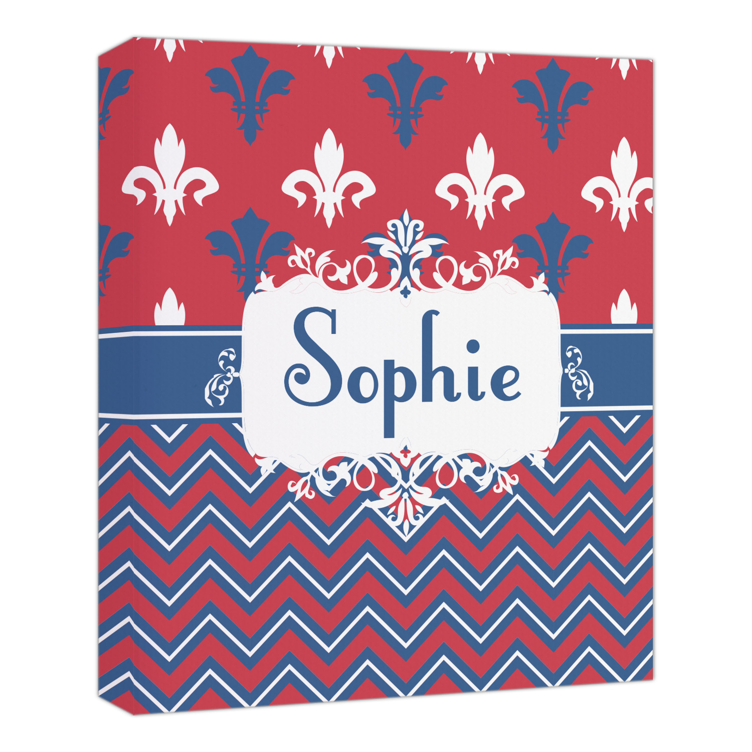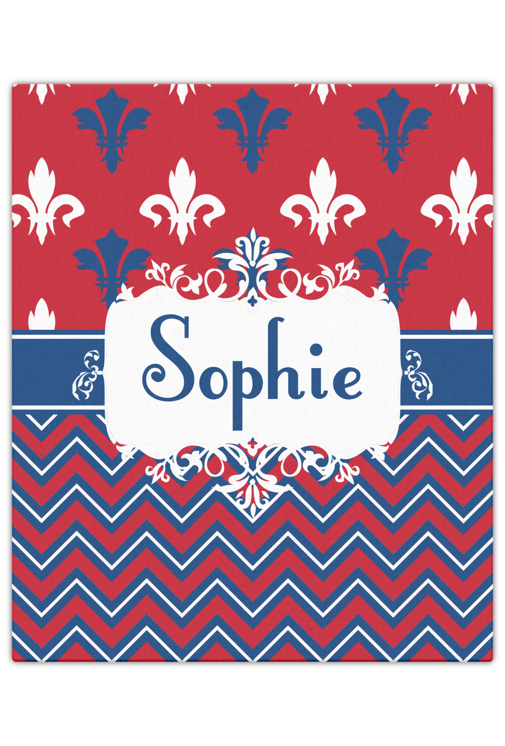 Remember the independence of our country with the Patriotic Fleur de Lis design. This design is a powerful combination of red, white, and blue. A chevron pattern nicely compliments the fleur de lis pattern with an elegant frame to hold your personalization.