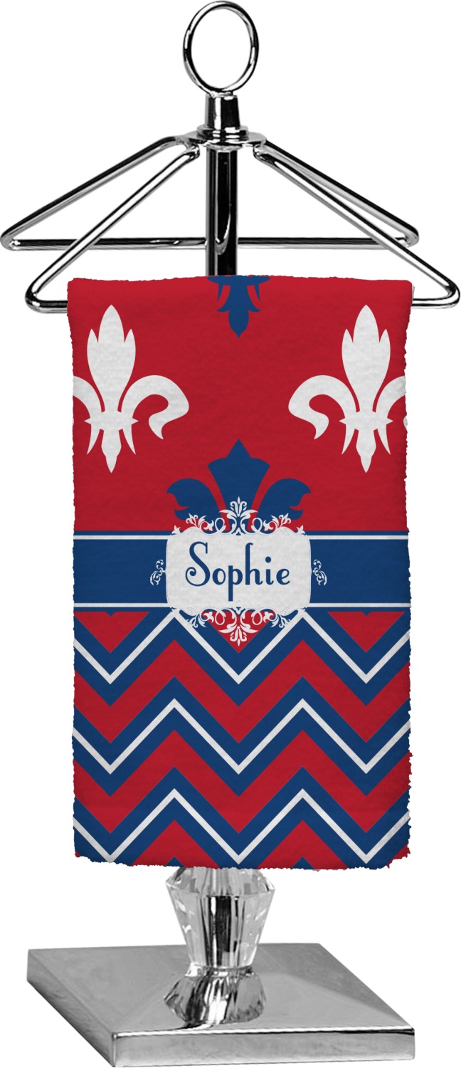 Remember the independence of our country with the Patriotic Fleur de Lis design. This design is a powerful combination of red, white, and blue. A chevron pattern nicely compliments the fleur de lis pattern with an elegant frame to hold your personalization.