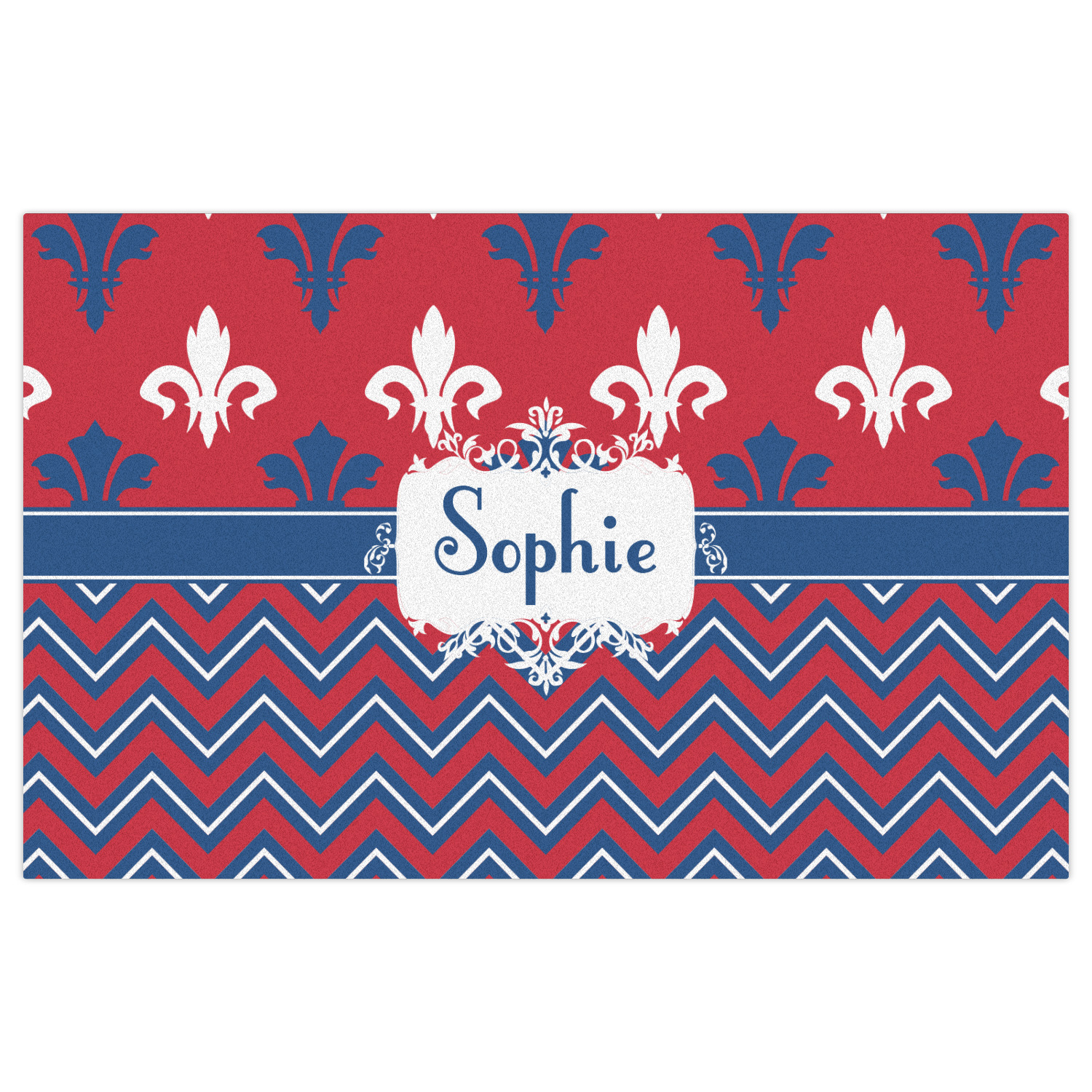 Remember the independence of our country with the Patriotic Fleur de Lis design. This design is a powerful combination of red, white, and blue. A chevron pattern nicely compliments the fleur de lis pattern with an elegant frame to hold your personalization.