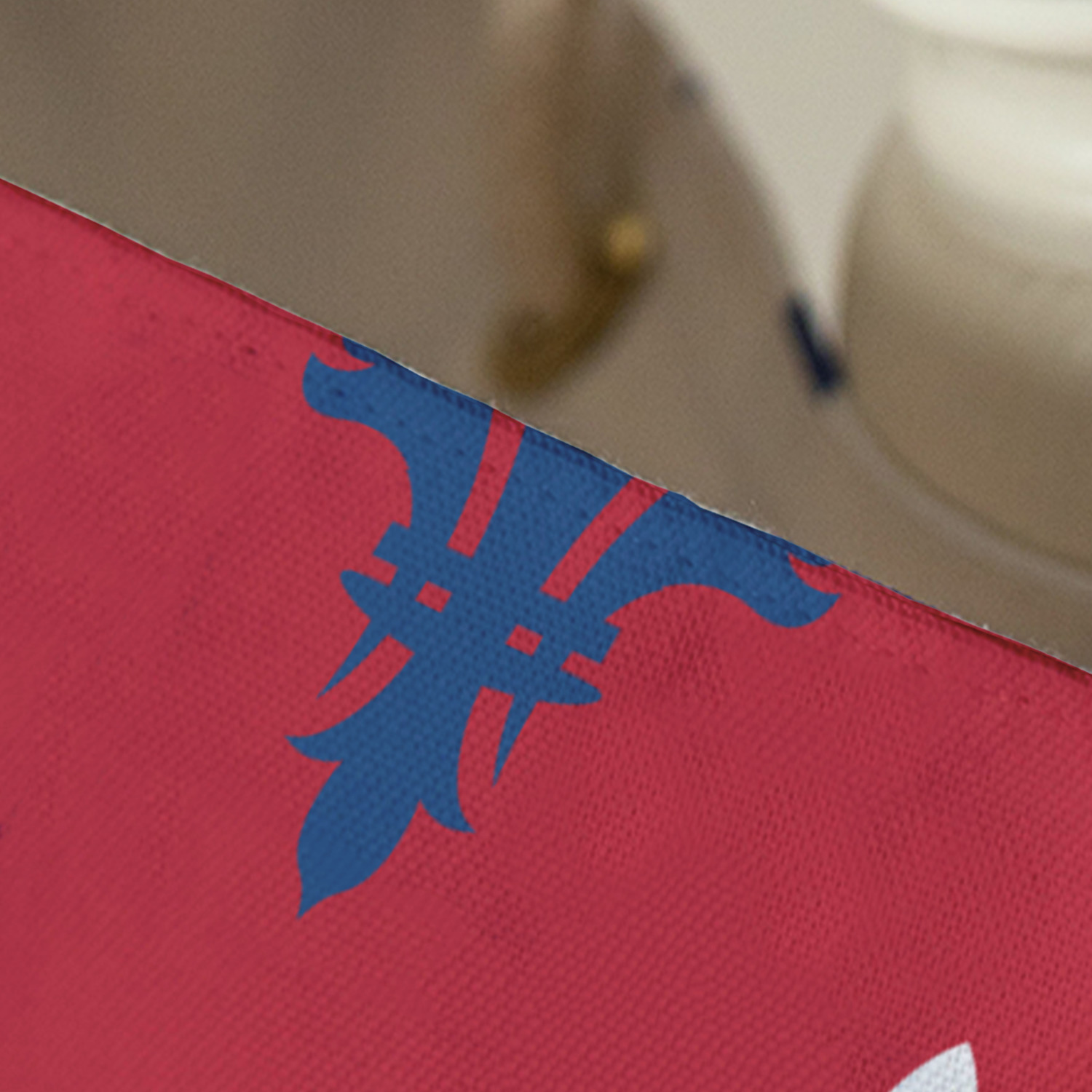 Remember the independence of our country with the Patriotic Fleur de Lis design. This design is a powerful combination of red, white, and blue. A chevron pattern nicely compliments the fleur de lis pattern with an elegant frame to hold your personalization.