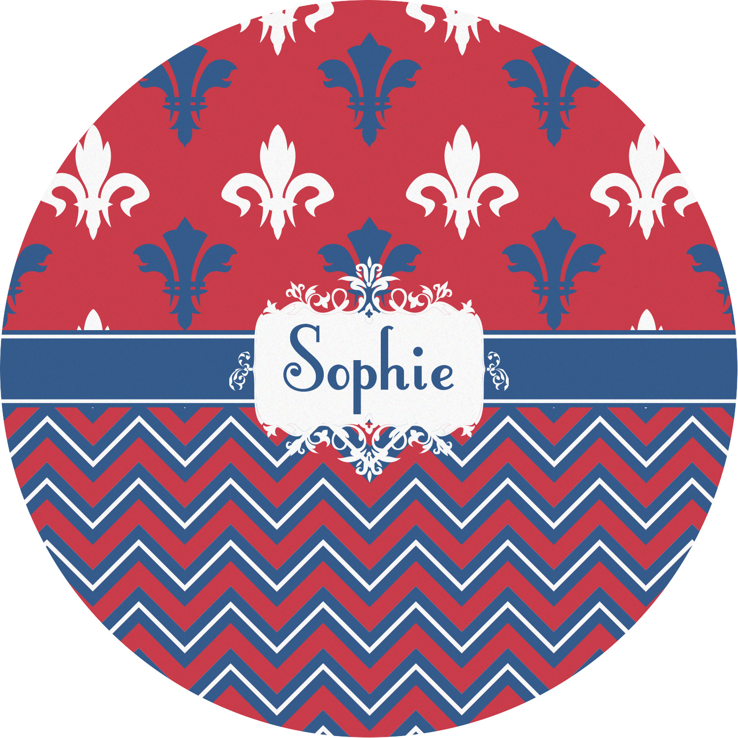 Remember the independence of our country with the Patriotic Fleur de Lis design. This design is a powerful combination of red, white, and blue. A chevron pattern nicely compliments the fleur de lis pattern with an elegant frame to hold your personalization.