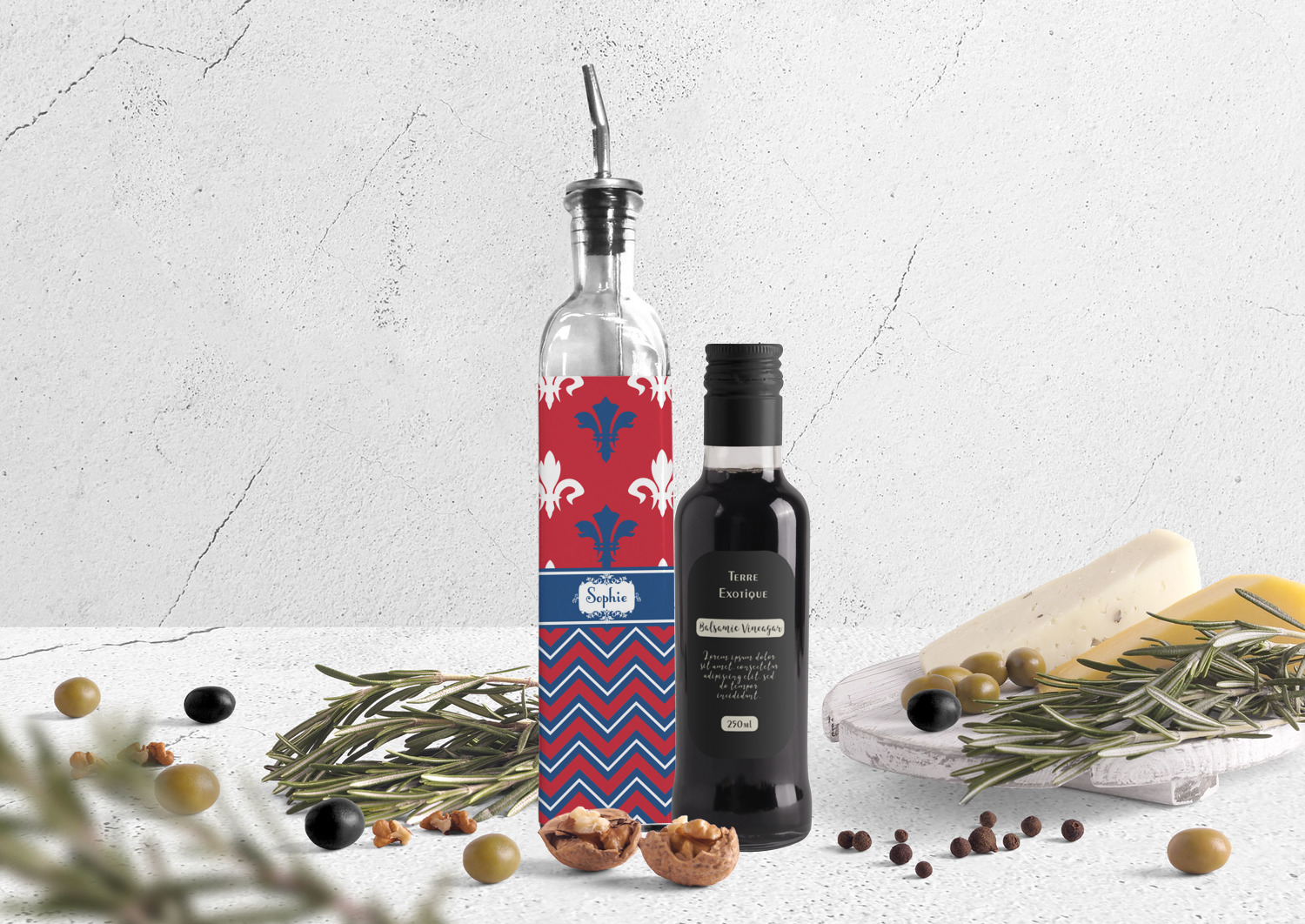 Shape + Symbol Designs for Oil Dispenser Bottles