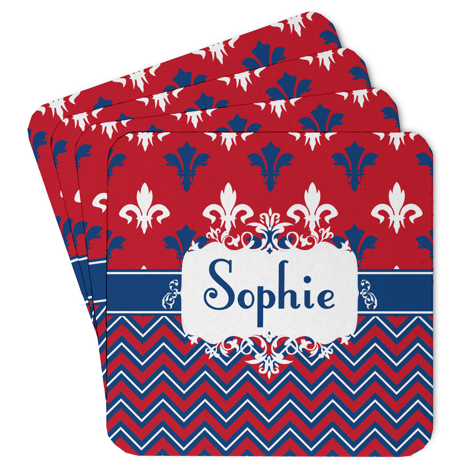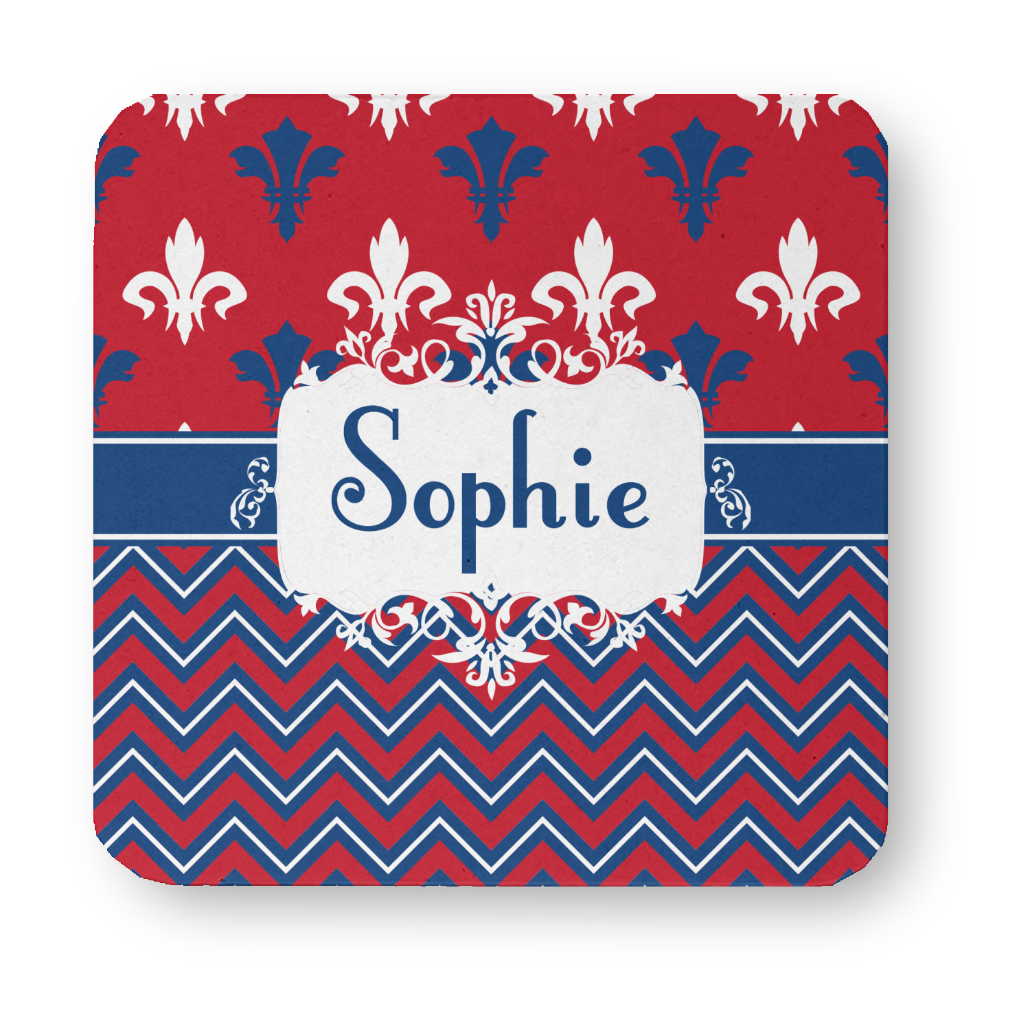 Remember the independence of our country with the Patriotic Fleur de Lis design. This design is a powerful combination of red, white, and blue. A chevron pattern nicely compliments the fleur de lis pattern with an elegant frame to hold your personalization.