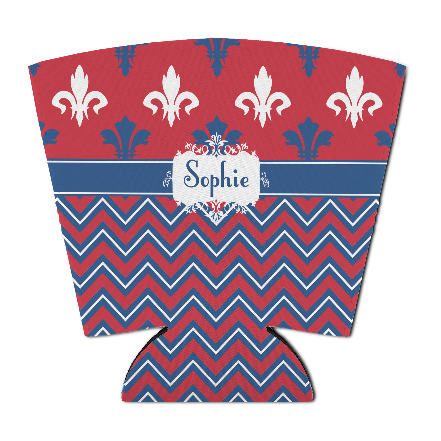 Remember the independence of our country with the Patriotic Fleur de Lis design. This design is a powerful combination of red, white, and blue. A chevron pattern nicely compliments the fleur de lis pattern with an elegant frame to hold your personalization.