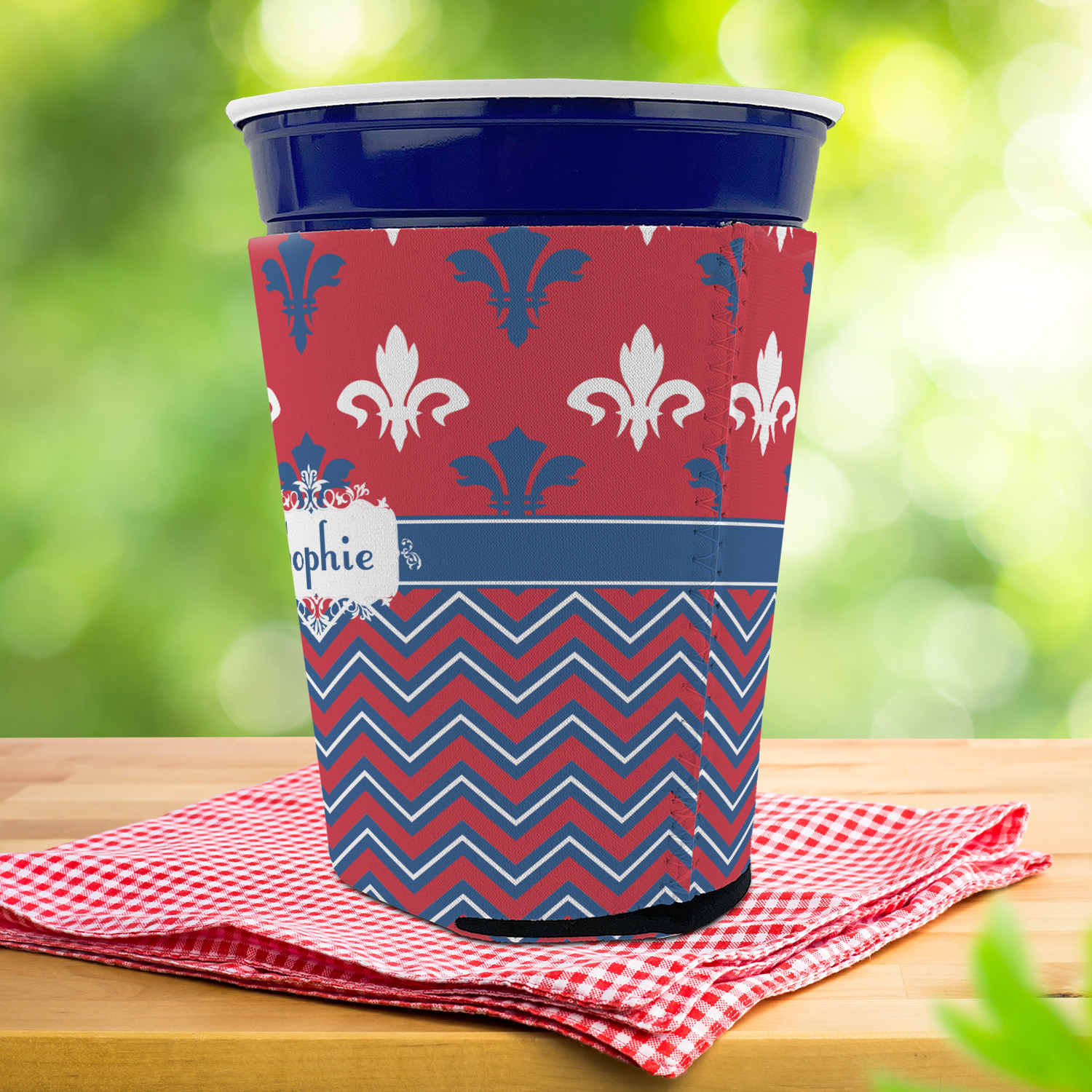 Made from neoprene with a polyester outer fabric and sewn seams, these premium quality party cup sleeves are very durable and will hold up to heavy use. They are available in 2 styles - with a bottom or just a sleeve to go around the outside of the tapered cup. The sleeve covers are about 4" tall and cover about 90% of the classic 16 oz. Solo cup.