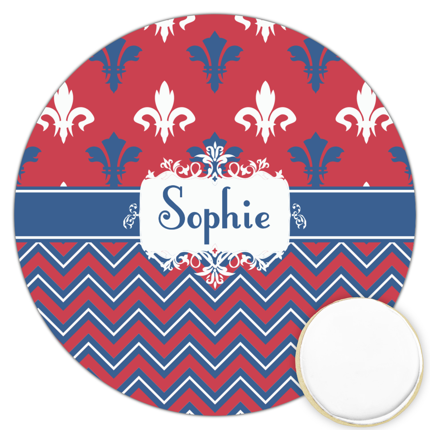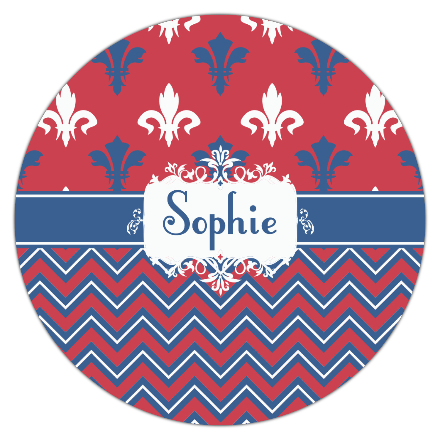 Remember the independence of our country with the Patriotic Fleur de Lis design. This design is a powerful combination of red, white, and blue. A chevron pattern nicely compliments the fleur de lis pattern with an elegant frame to hold your personalization.