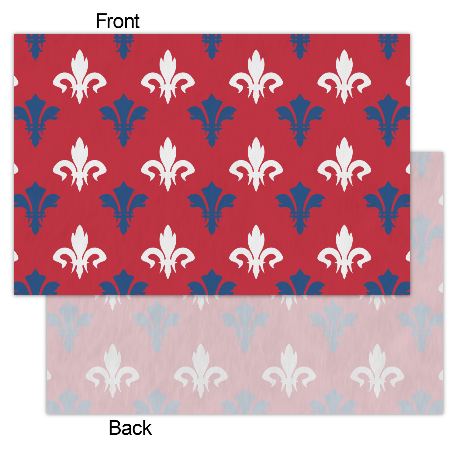 Remember the independence of our country with the Patriotic Fleur de Lis design. This design is a powerful combination of red, white, and blue. A chevron pattern nicely compliments the fleur de lis pattern with an elegant frame to hold your personalization.