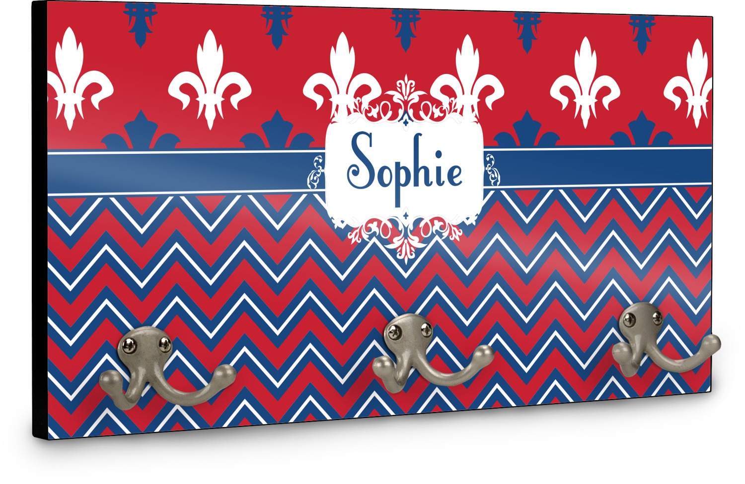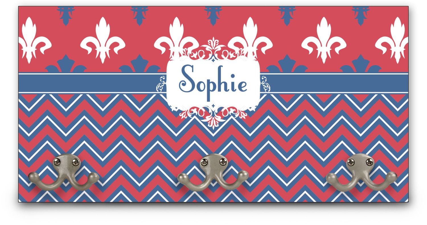 This coat rack is the perfect way to add some personality to your wall or entryway. The board is made of a strong maple that is approximately 16" x 8". The three 2-prong hooks are a sturdy metal that have three screws attaching them to the board. Your design is printed right onto the front of the board while the back and sides are a simple black.
