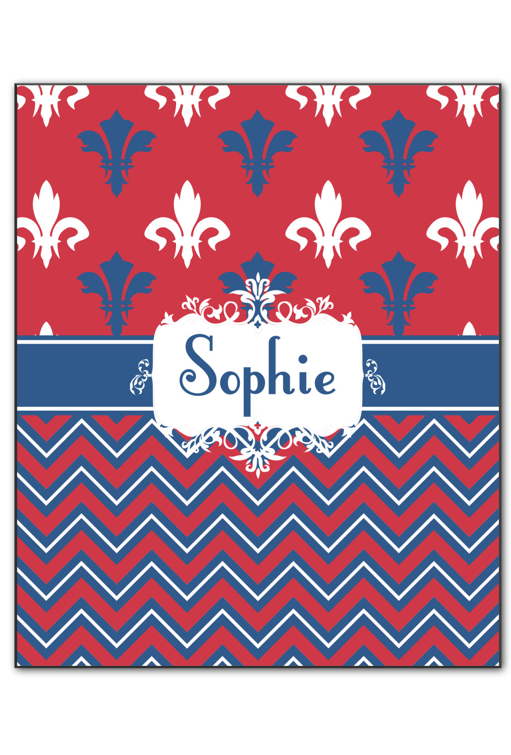 Remember the independence of our country with the Patriotic Fleur de Lis design. This design is a powerful combination of red, white, and blue. A chevron pattern nicely compliments the fleur de lis pattern with an elegant frame to hold your personalization.