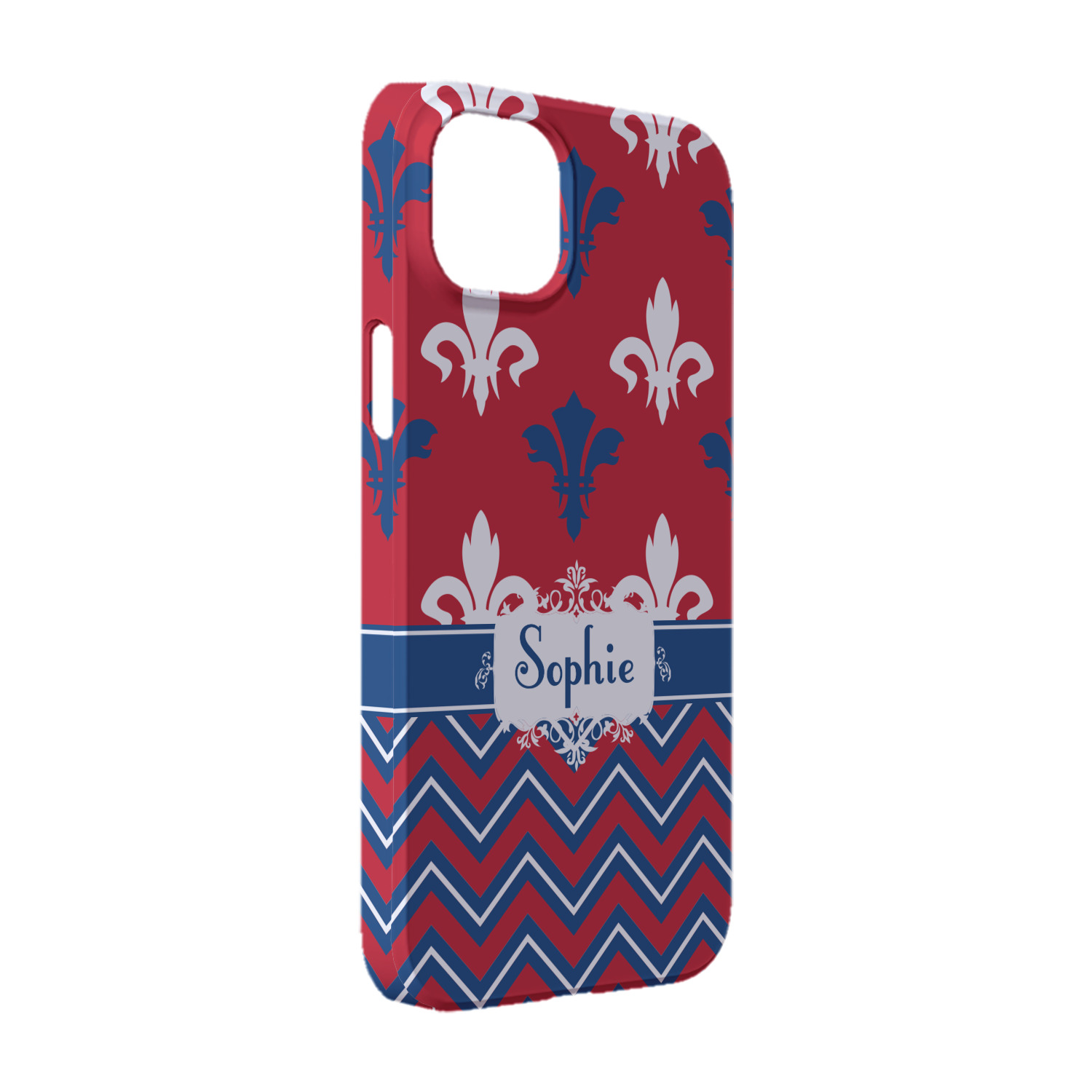 Remember the independence of our country with the Patriotic Fleur de Lis design. This design is a powerful combination of red, white, and blue. A chevron pattern nicely compliments the fleur de lis pattern with an elegant frame to hold your personalization.